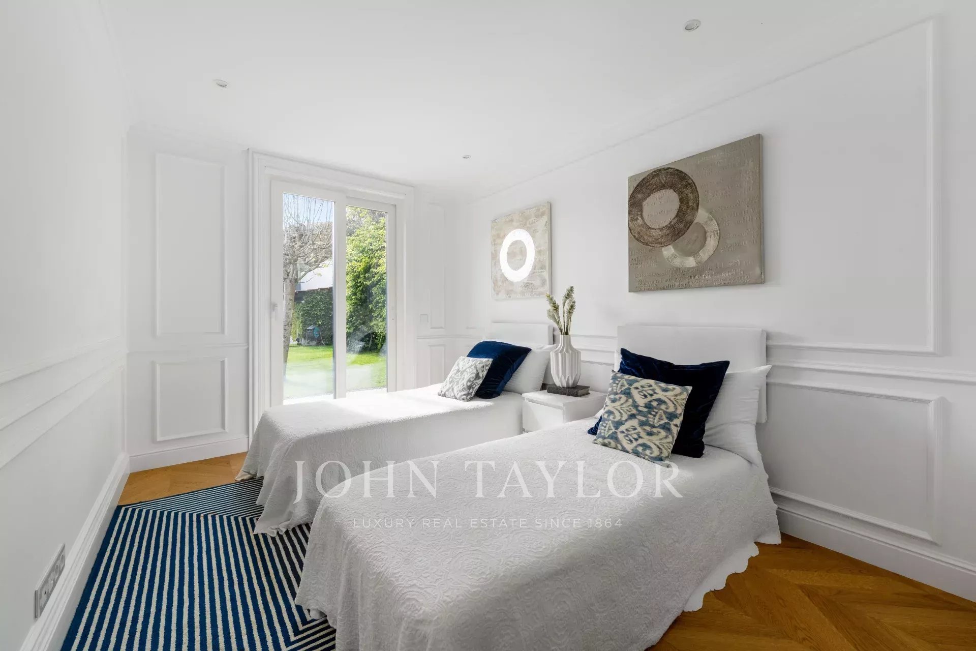 Снаружи дома расположен частный сад с бассейном и отдельная пристройка с кухней и ванной комнатой, идеально подходящая для использования в качестве гостевых апартаментов, домашнего офиса или тренажерного зала.