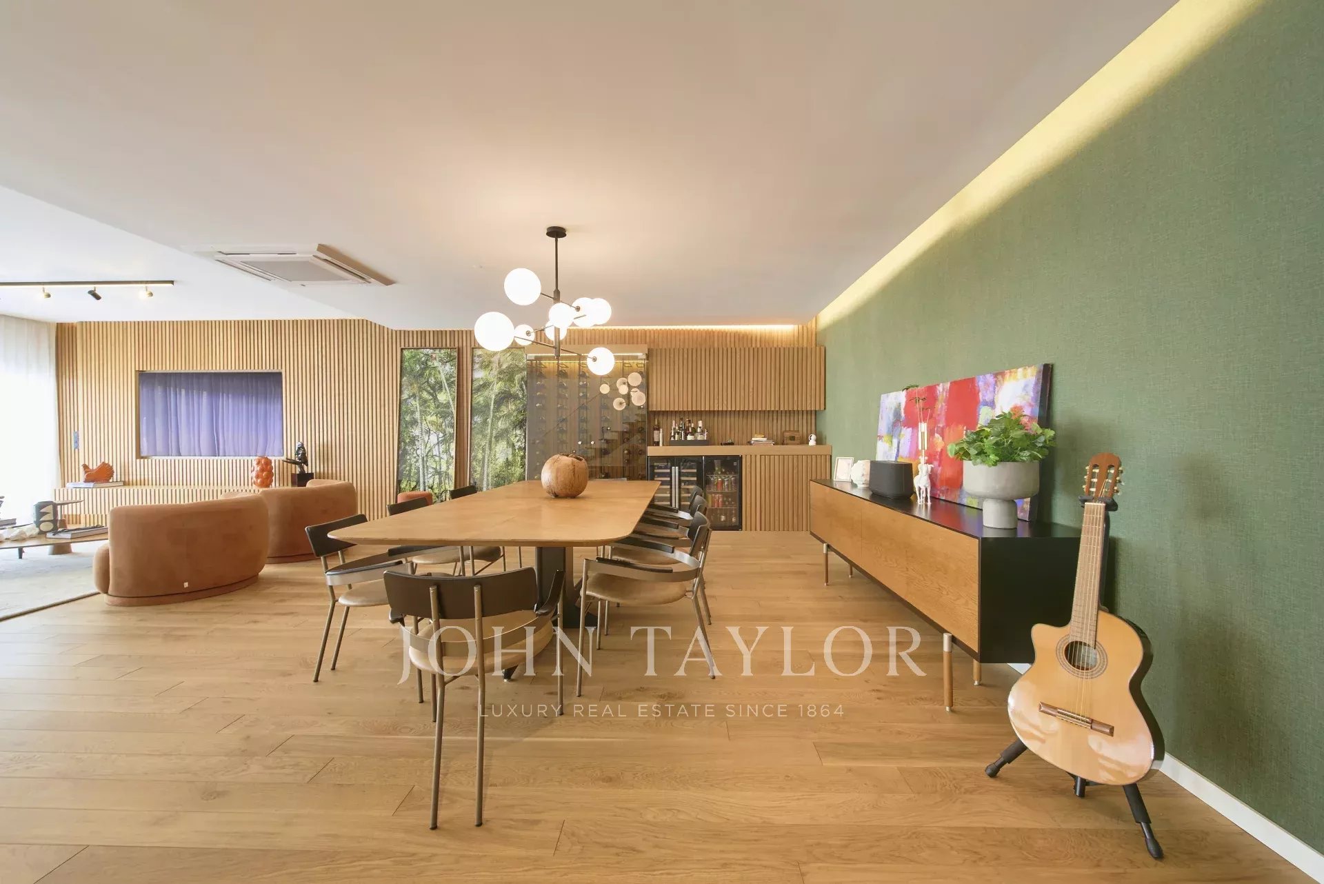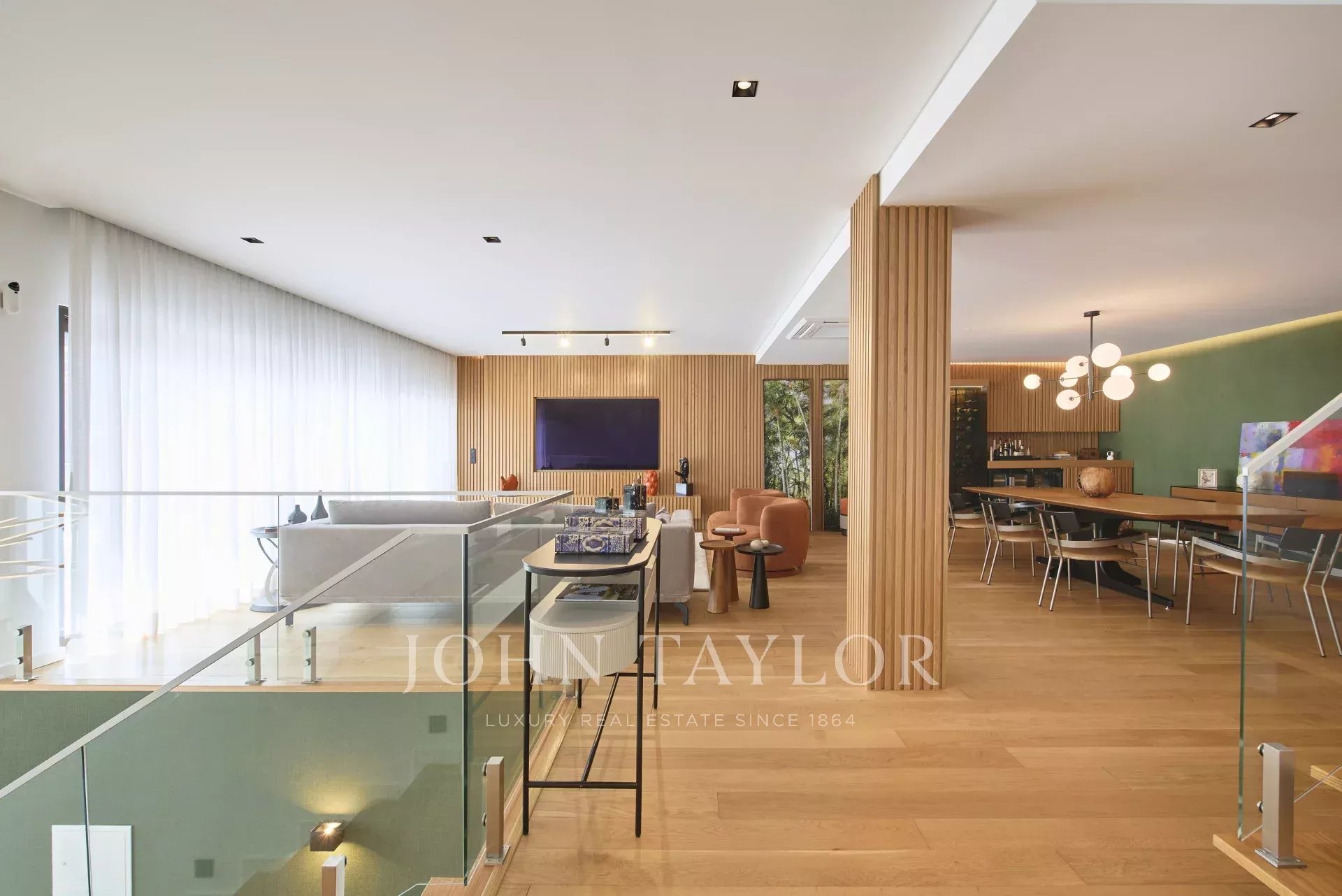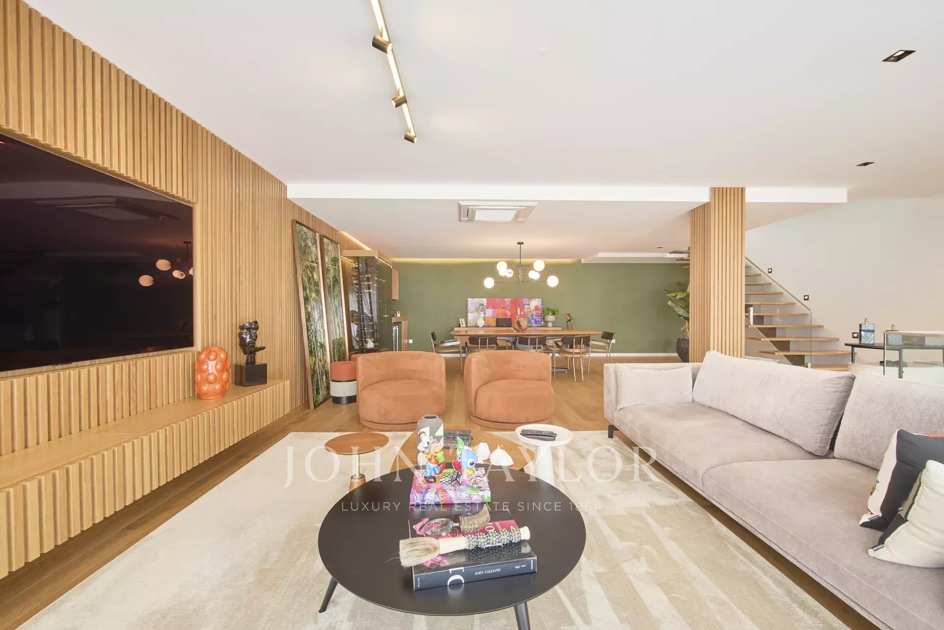 На главном этаже расположены светлая гостиная открытой планировки и полностью оборудованная кухня с прямым выходом на большую террасу, идеально подходящую для обедов и развлечений на свежем воздухе.