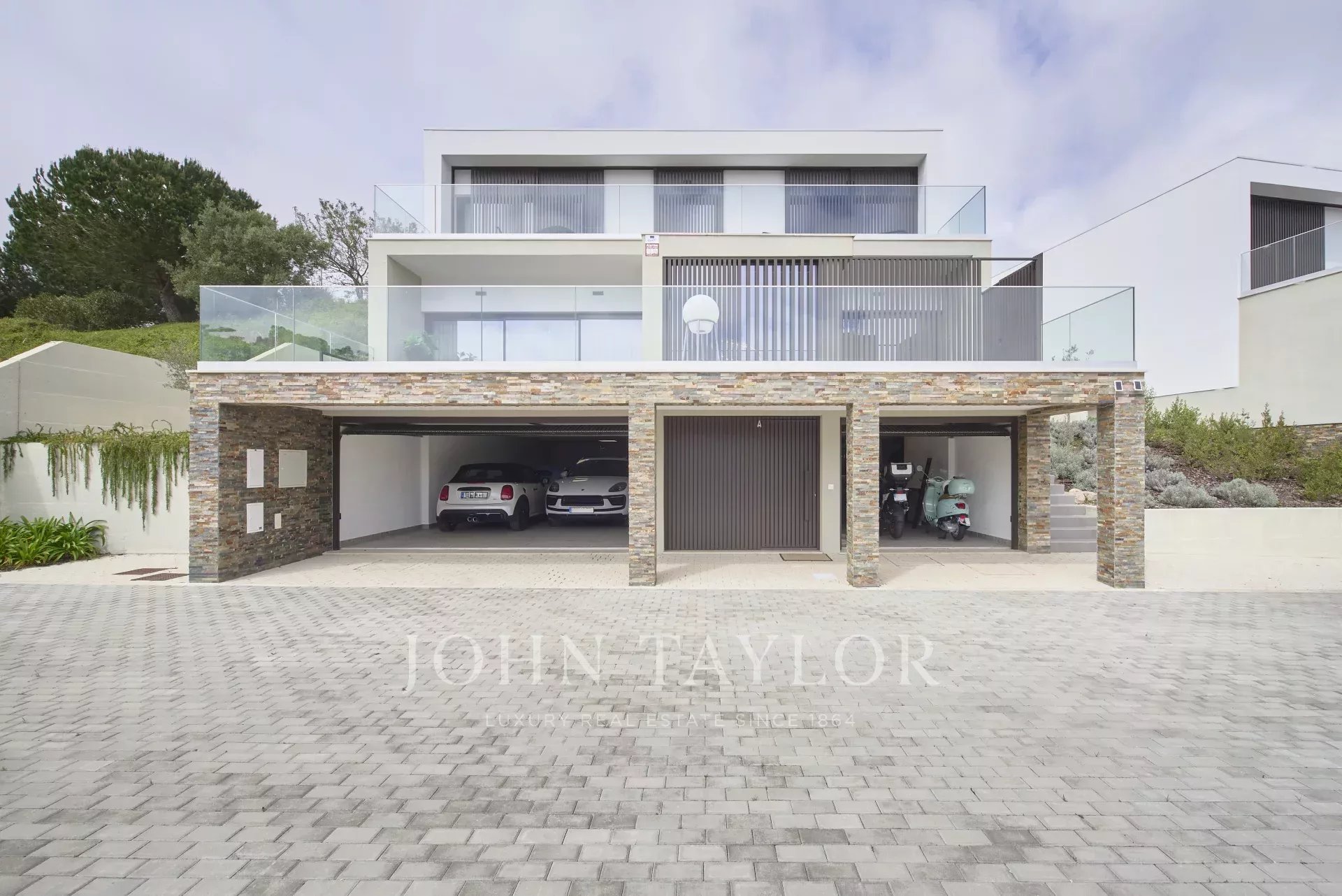 Этот дом, расположенный в охраняемом эксклюзивном районе, сочетает в себе современную архитектуру, приватность и близость к пляжам, полям для гольфа и основным достопримечательностям Эшторила.