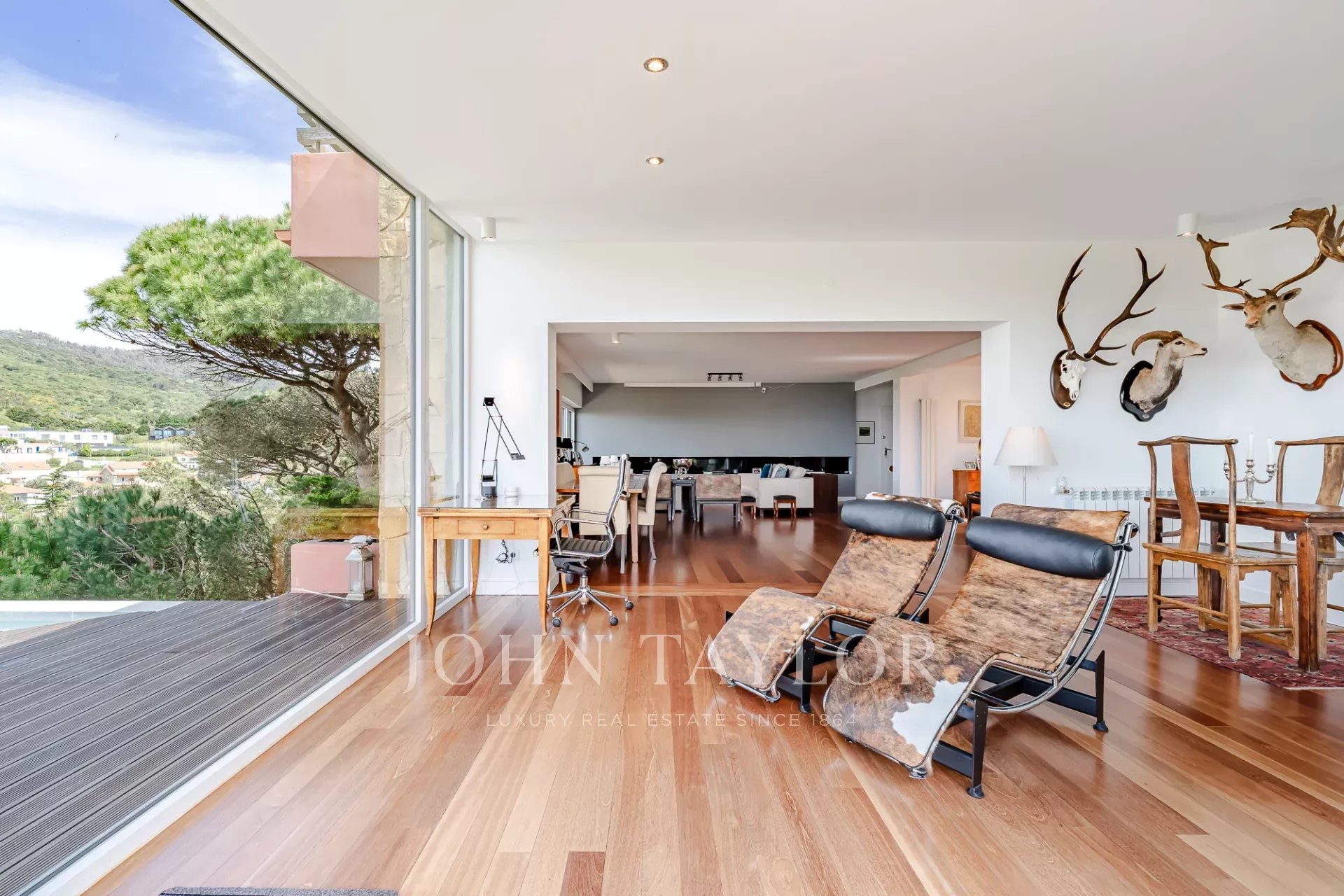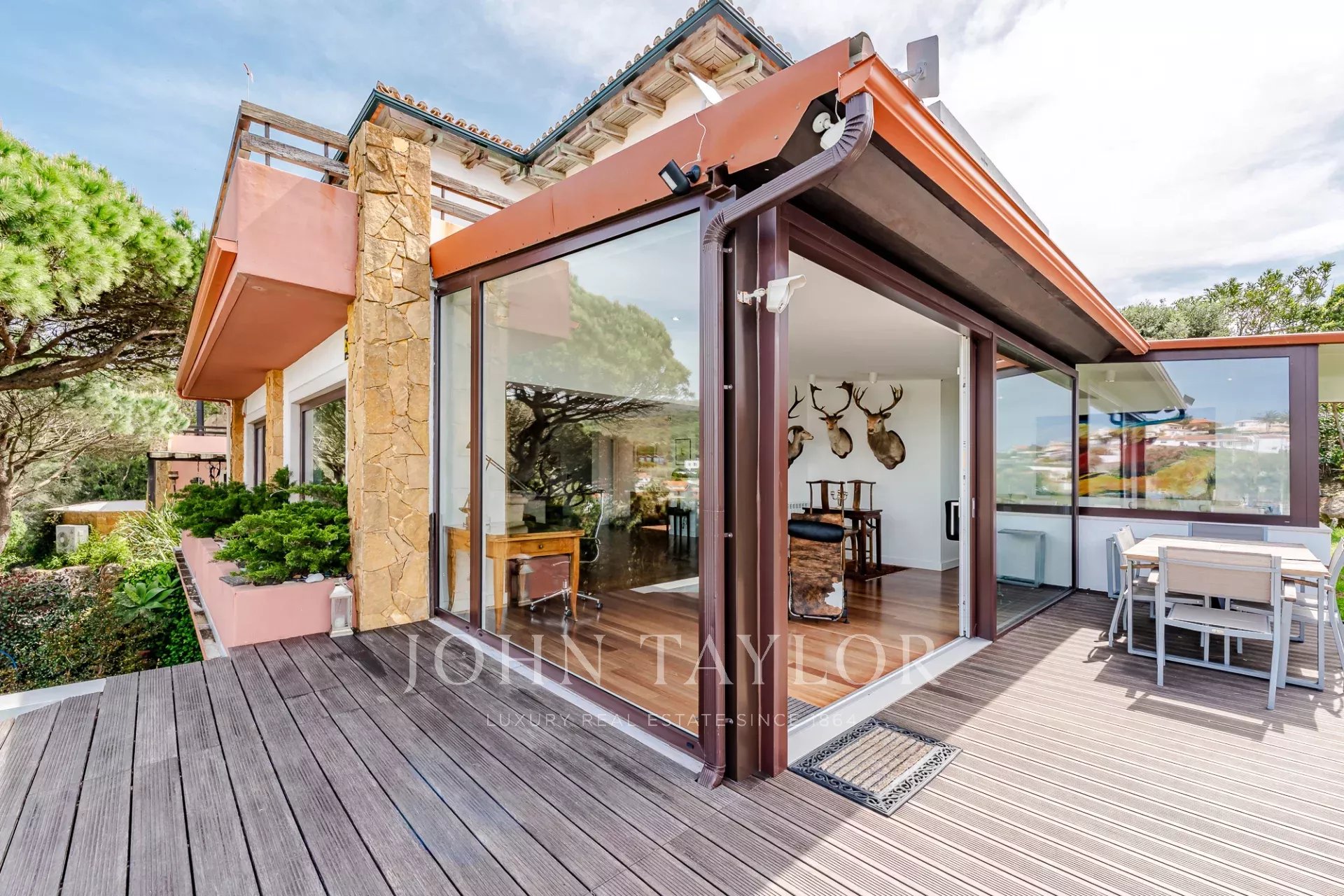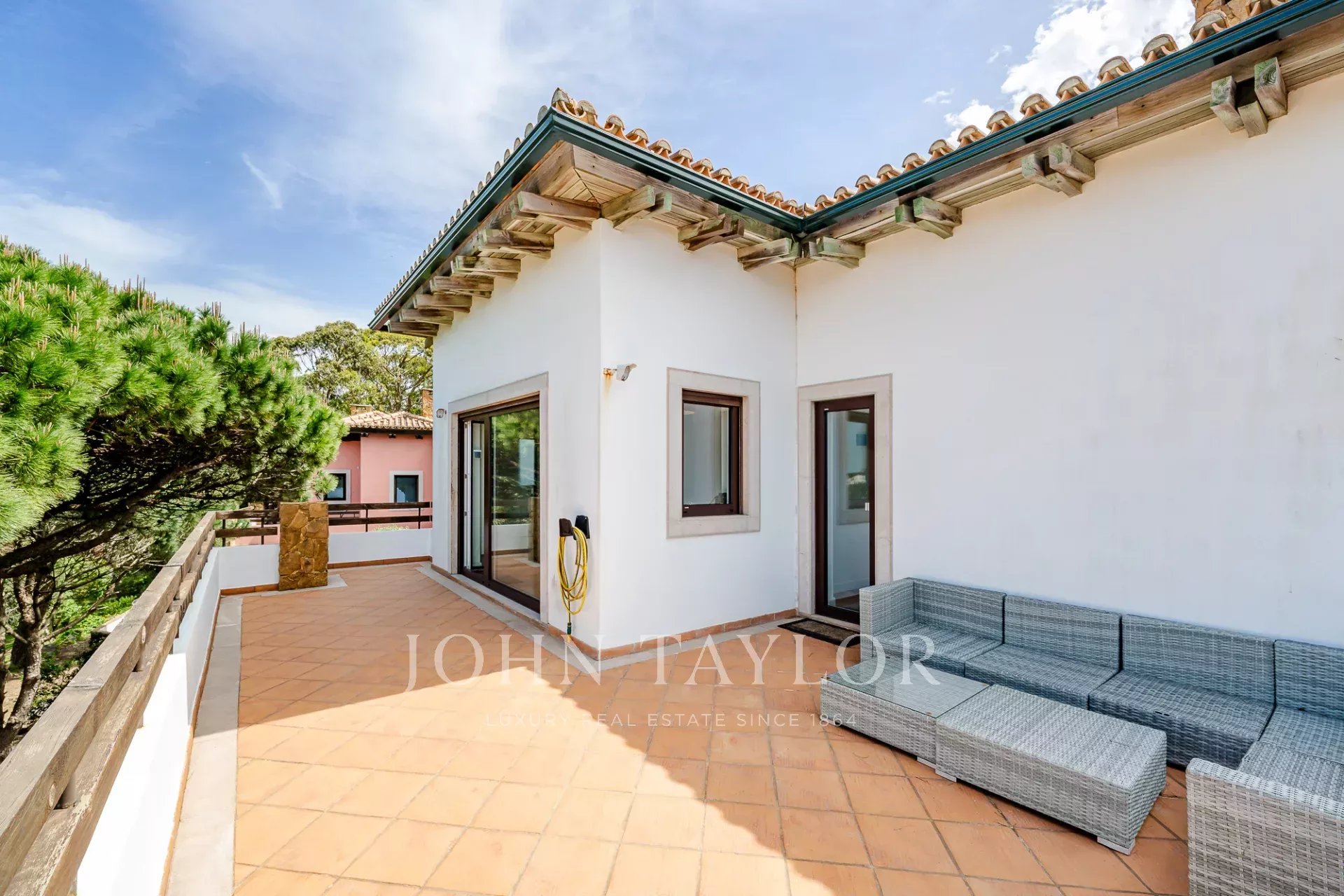 Жильцы могут пользоваться круглосуточной охраной, ландшафтными садами, общими бассейнами и теннисными кортами. Кроме того, в доме есть частная парковка и высококачественная отделка. Пляж находится всего в нескольких минутах езды, а до Лиссабона можно добраться чуть более чем за полчаса.