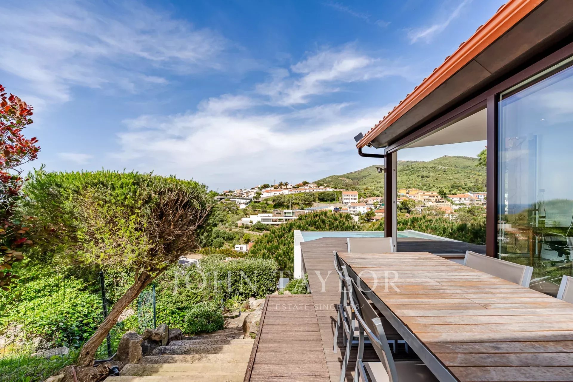 Открытая терраса и частный бассейн расположены так, чтобы максимально открыть вид на море, обеспечивая тесную связь с окружающим ландшафтом и полную приватность. Каждый уровень дома использует преимущества ориентации и вида, что делает его редкой находкой в этой части побережья.