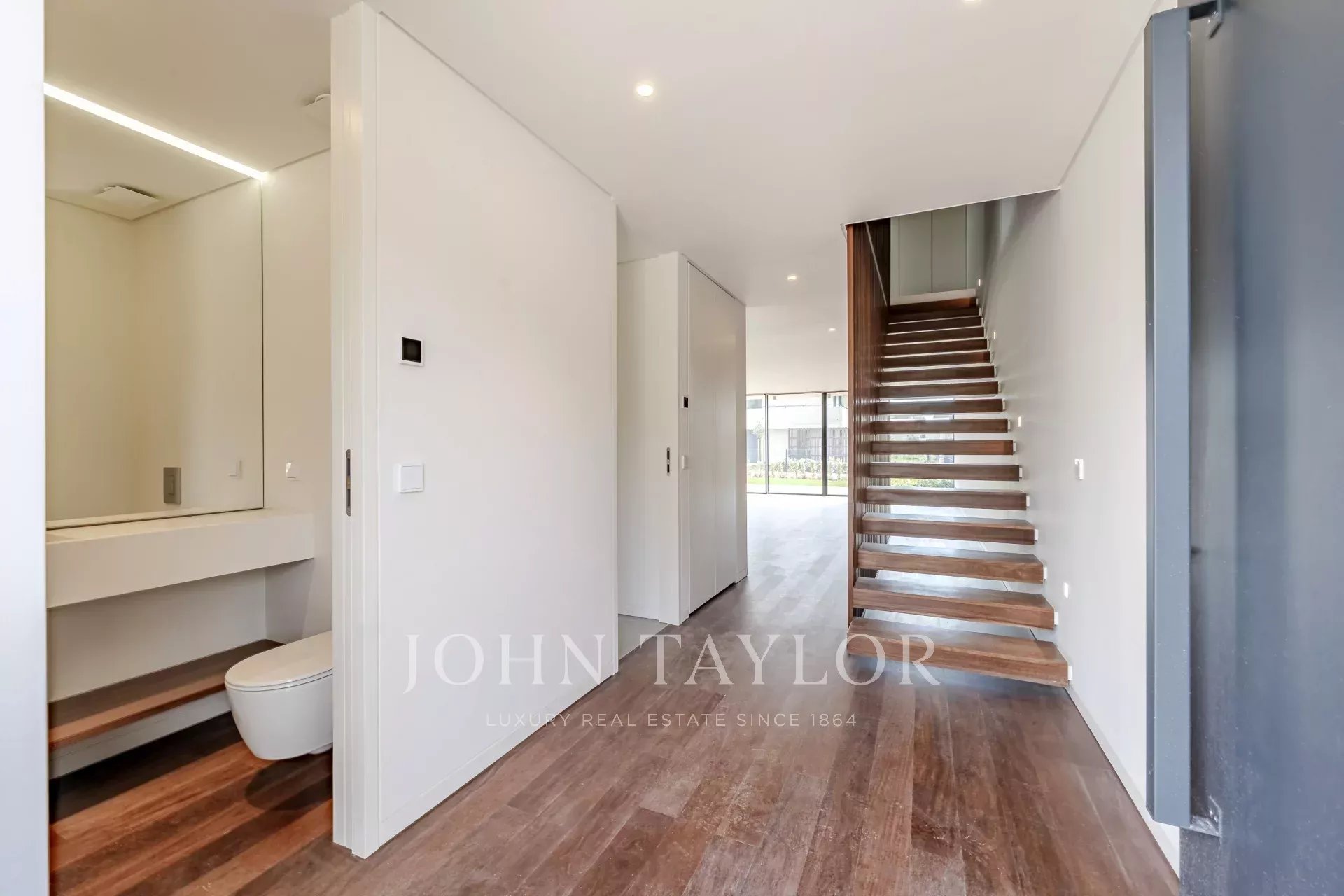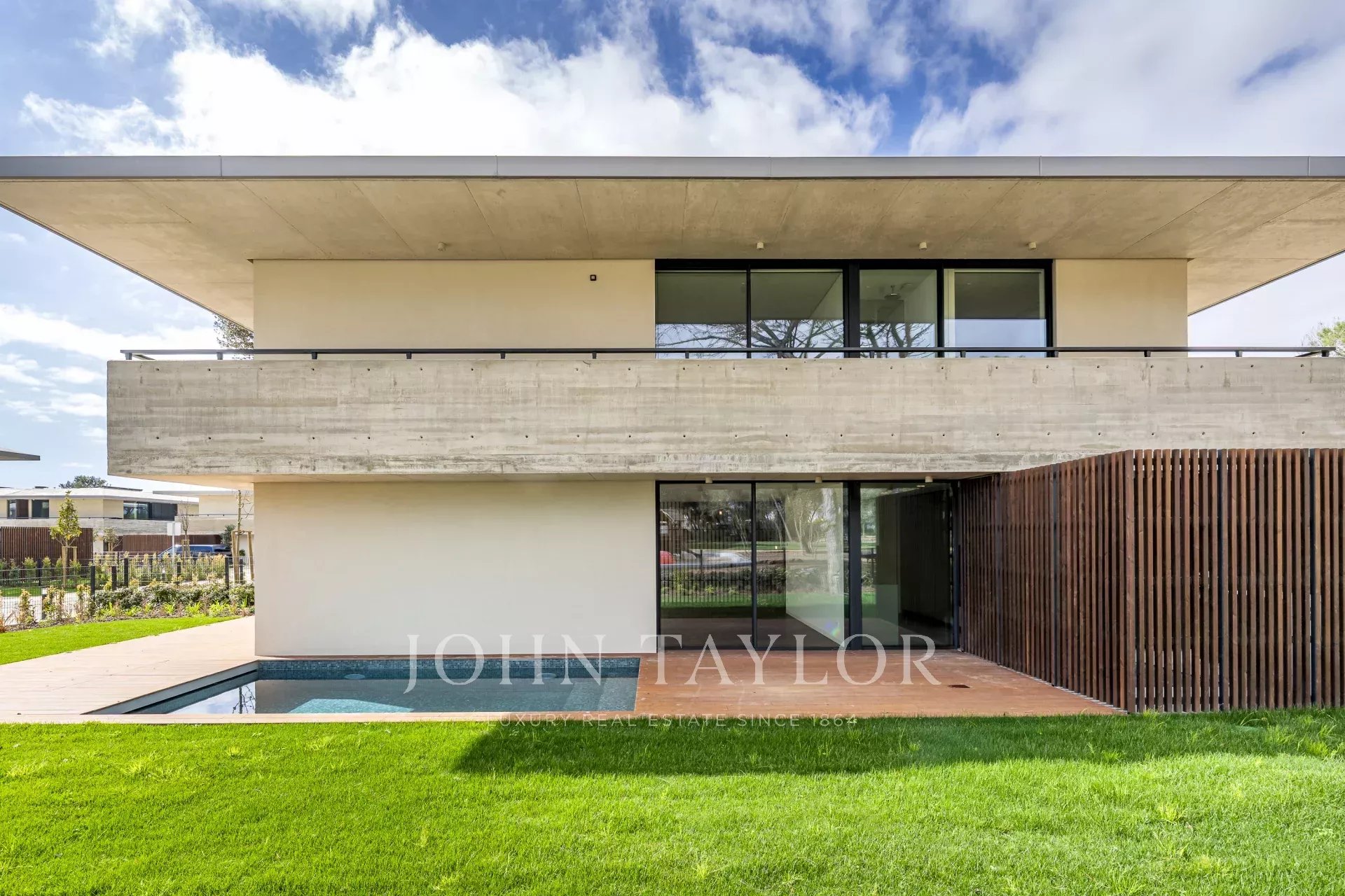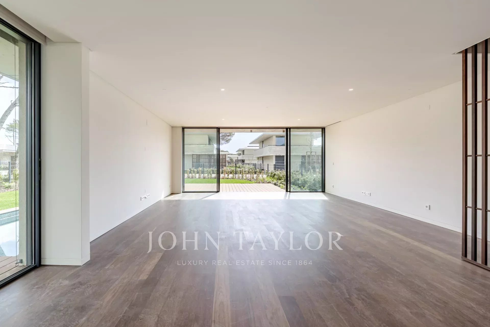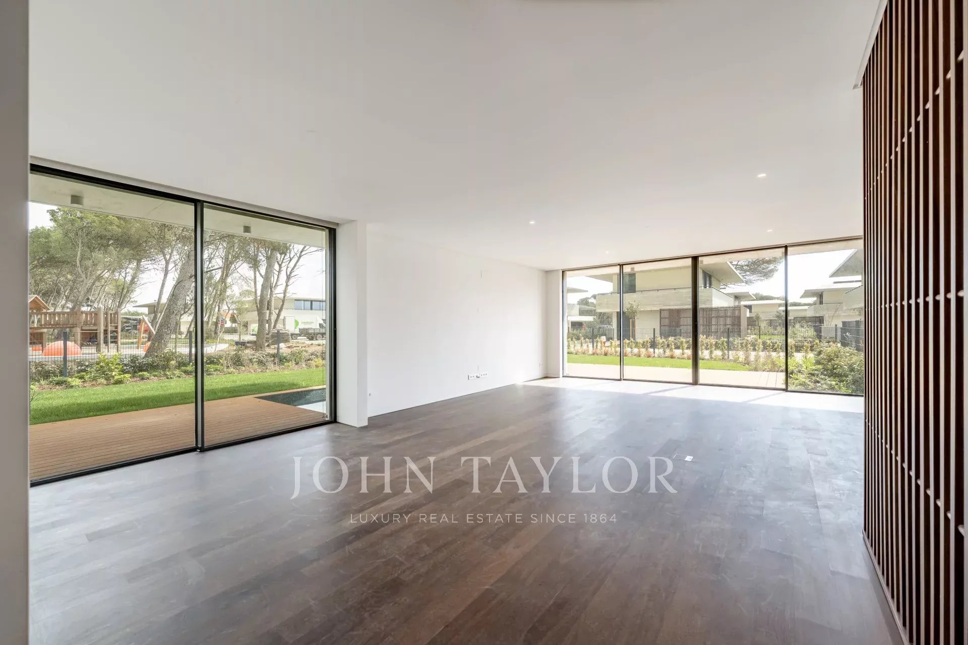 На первом этаже находится просторная гостиная и столовая открытой планировки площадью 48 м² с прямым выходом на палубу и в сад, обеспечивая плавный переход между внутренним и внешним пространством. На этом уровне также расположены полностью оборудованная кухня, прачечная с выходом на служебный дворик и гостевой туалет. К вилле прилагаются три частных парковочных места.