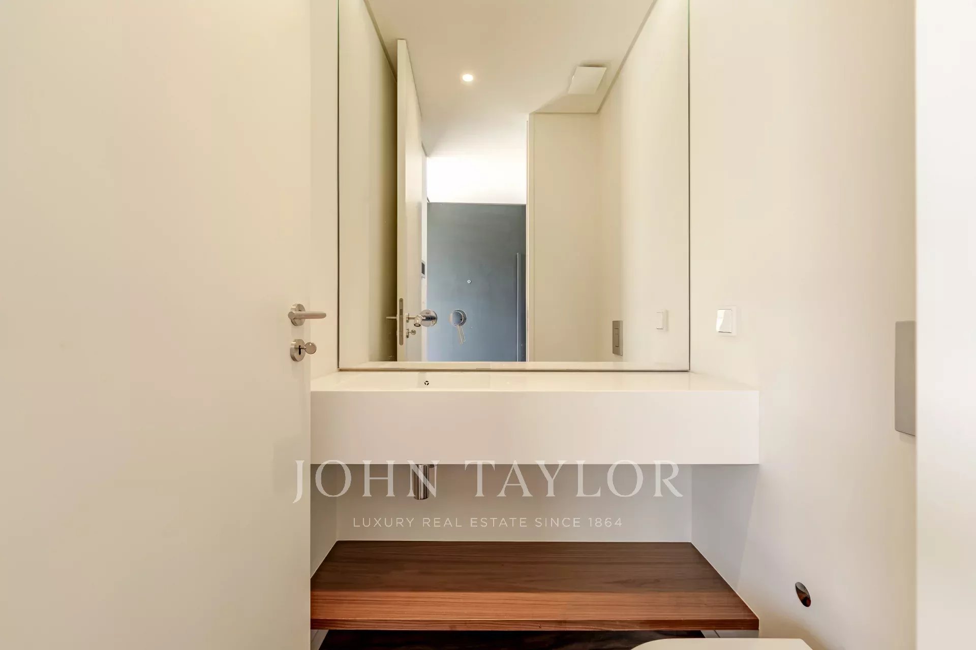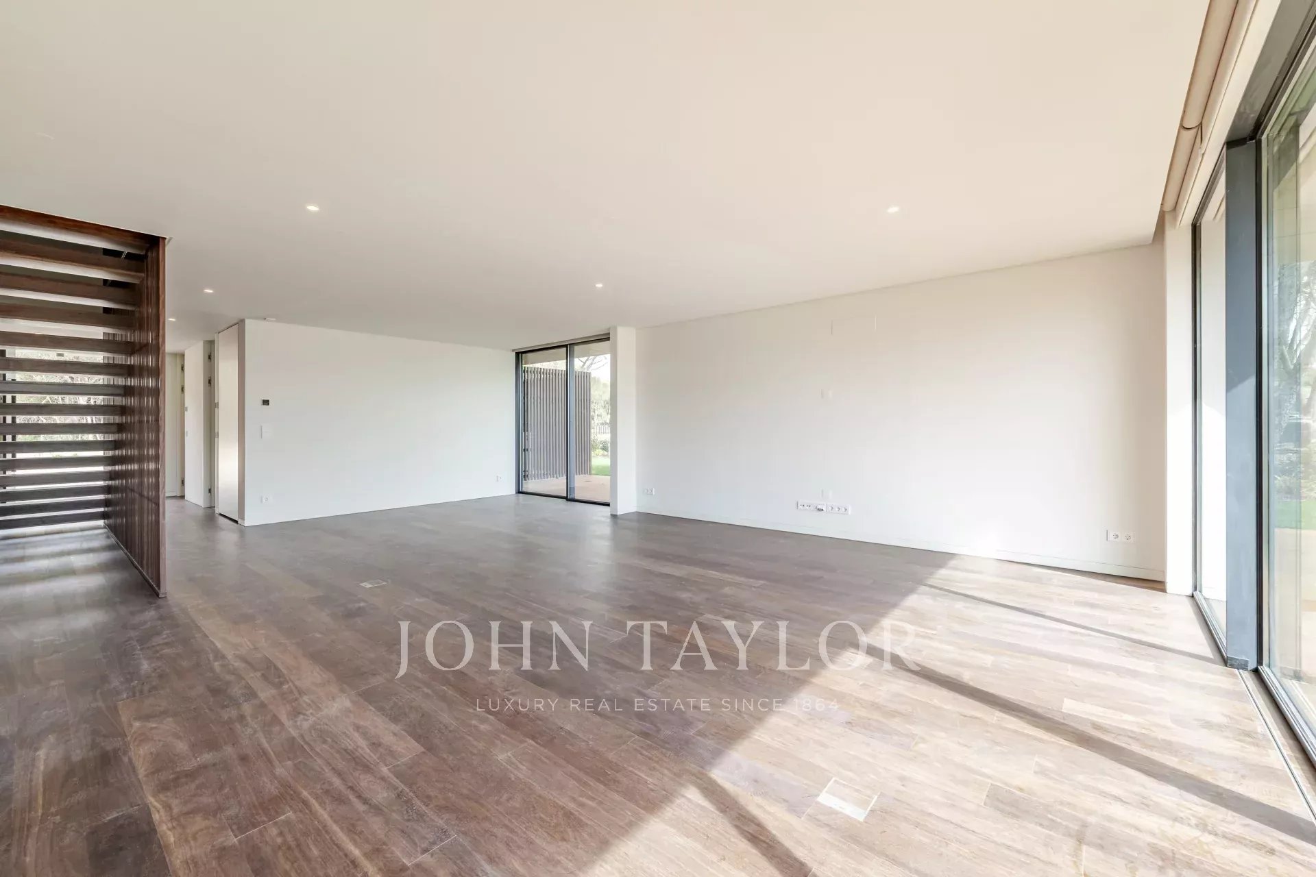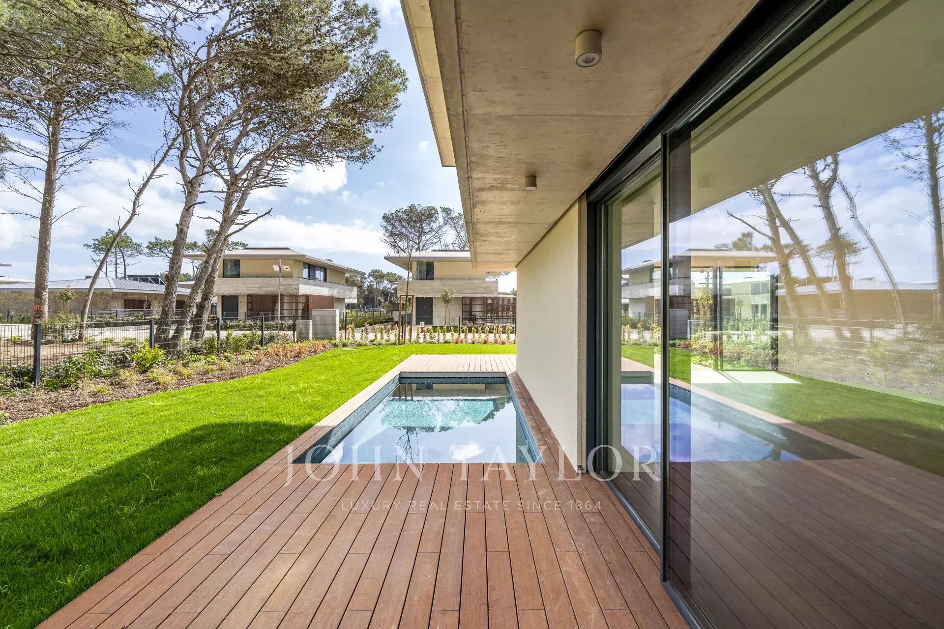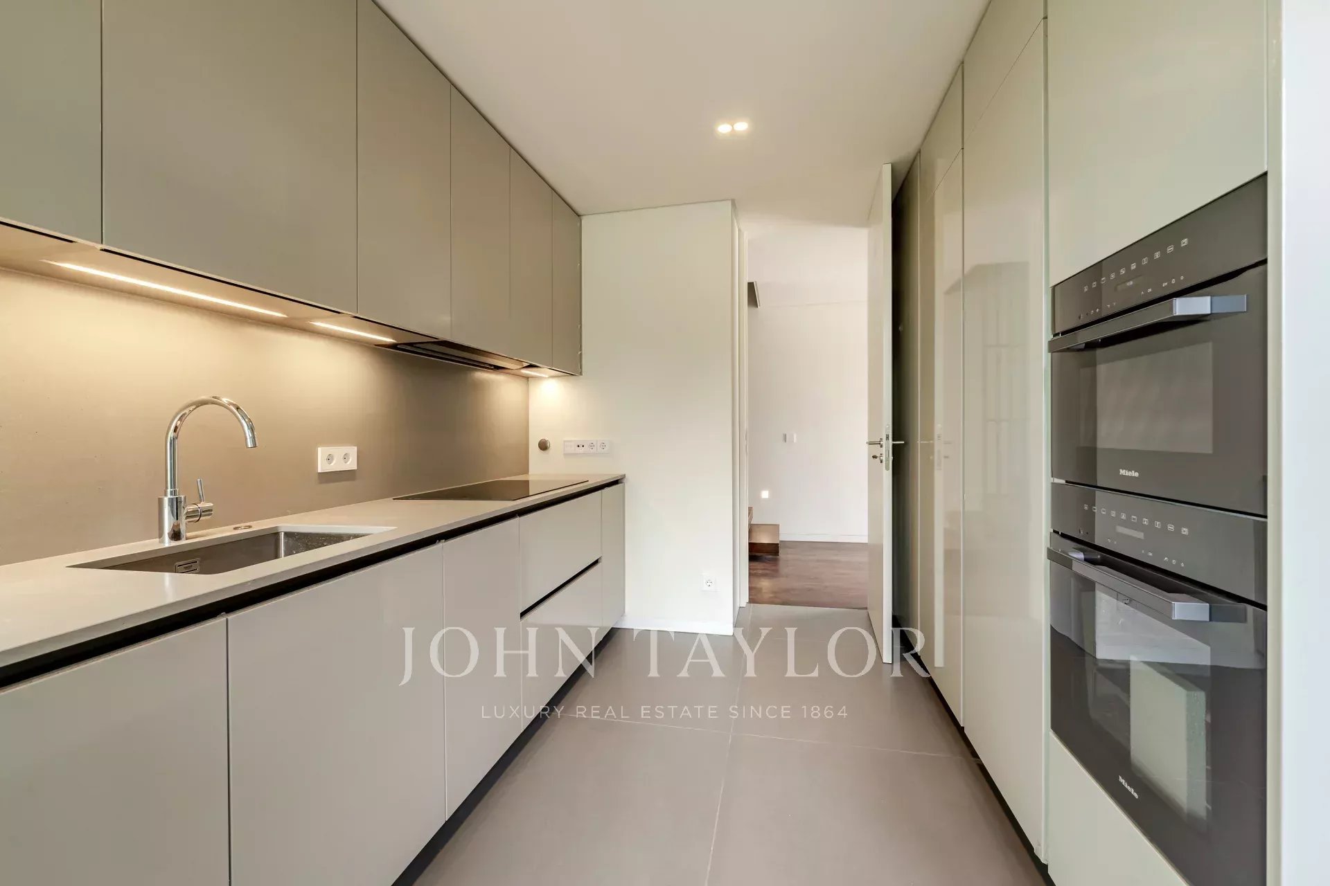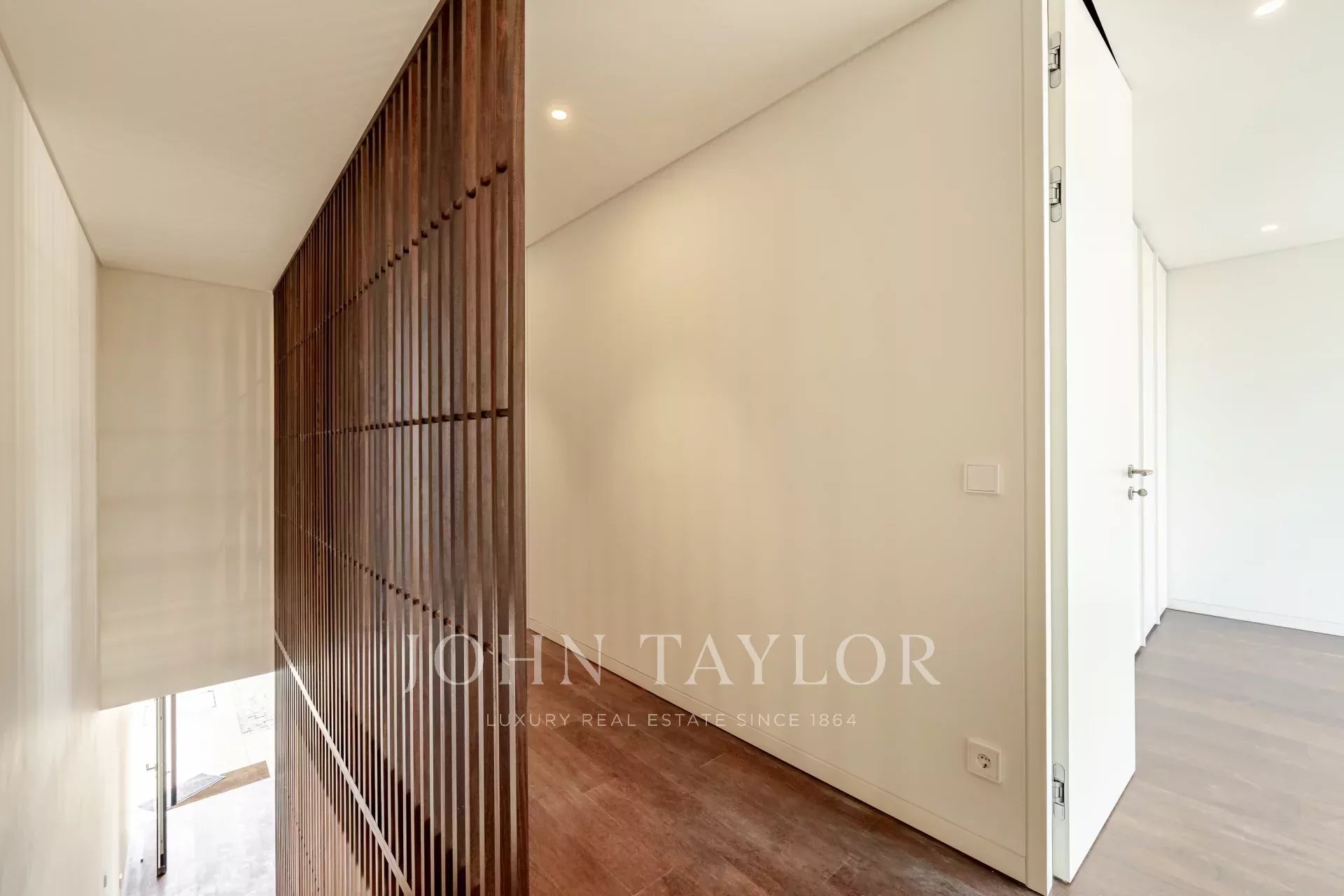 На первом этаже находится просторная гостиная и столовая открытой планировки площадью 48 м² с прямым выходом на палубу и в сад, обеспечивая плавный переход между внутренним и внешним пространством. На этом уровне также расположены полностью оборудованная кухня, прачечная с выходом на служебный дворик и гостевой туалет. К вилле прилагаются три частных парковочных места.