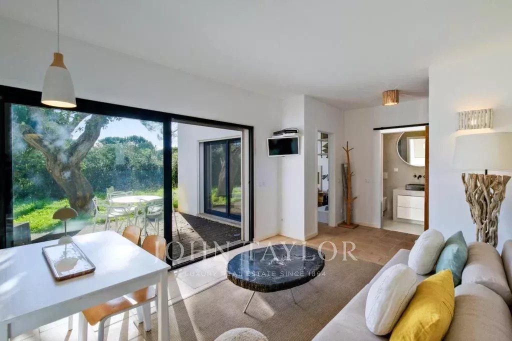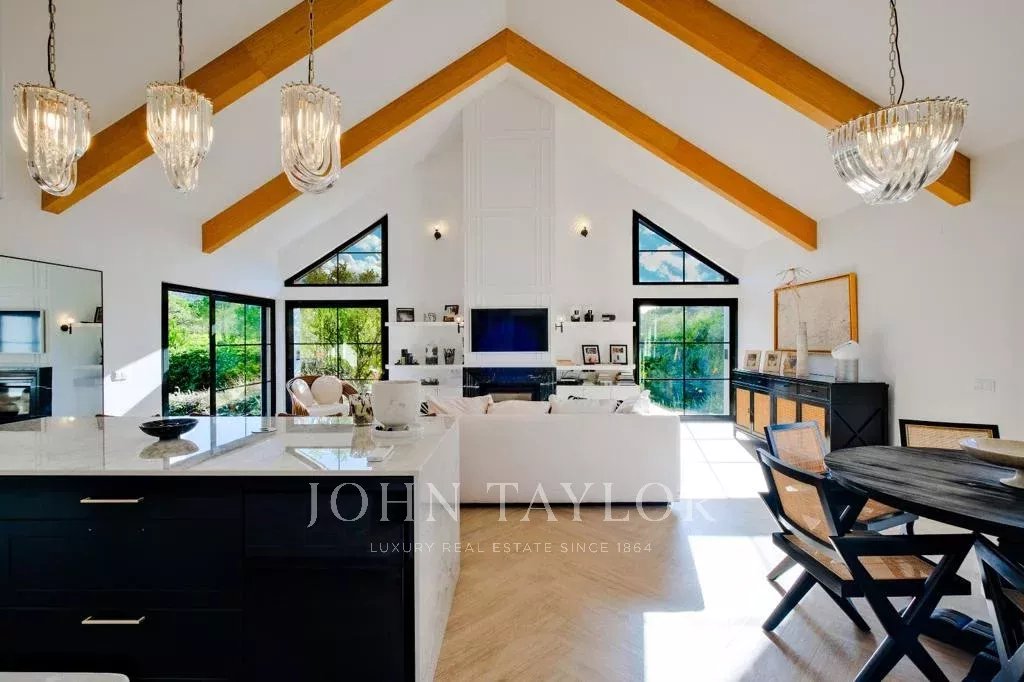 В главном доме три сьюта с отдельными террасами, просторные столовая и гостиная с каминами, большая кухня и выход на открытые террасы.