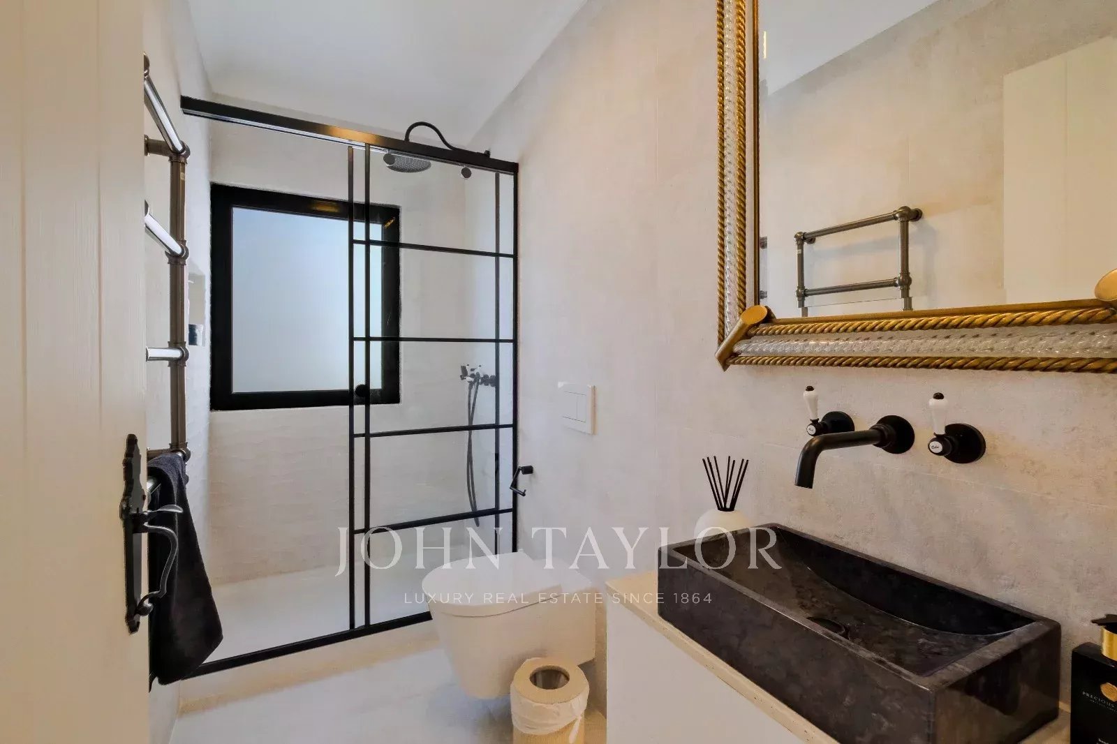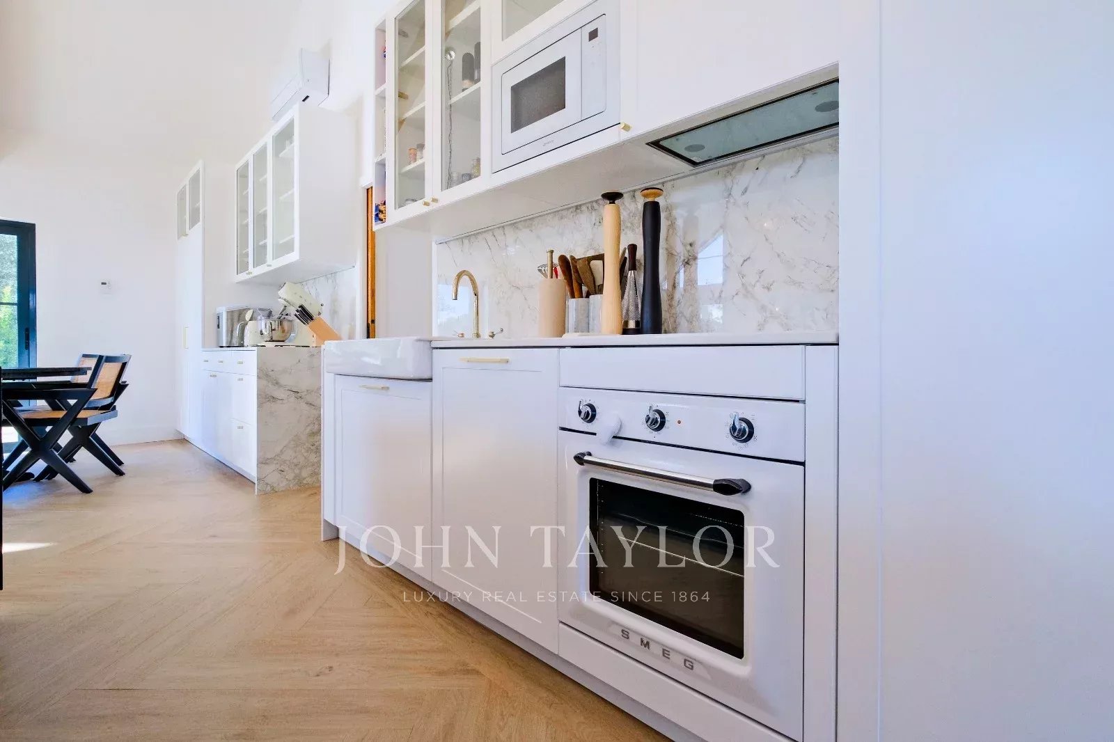 Дополнительные удобства включают центральное отопление, кондиционер, подогрев полов, двойные стеклопакеты с теплоизоляцией, деревянные ставни, систему безопасности с видеозаписью, ограждение по всему периметру и автоматические ворота.