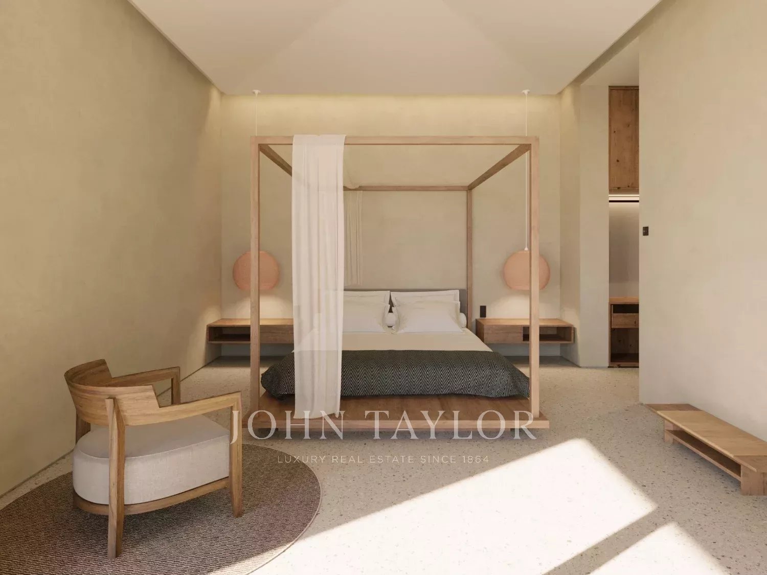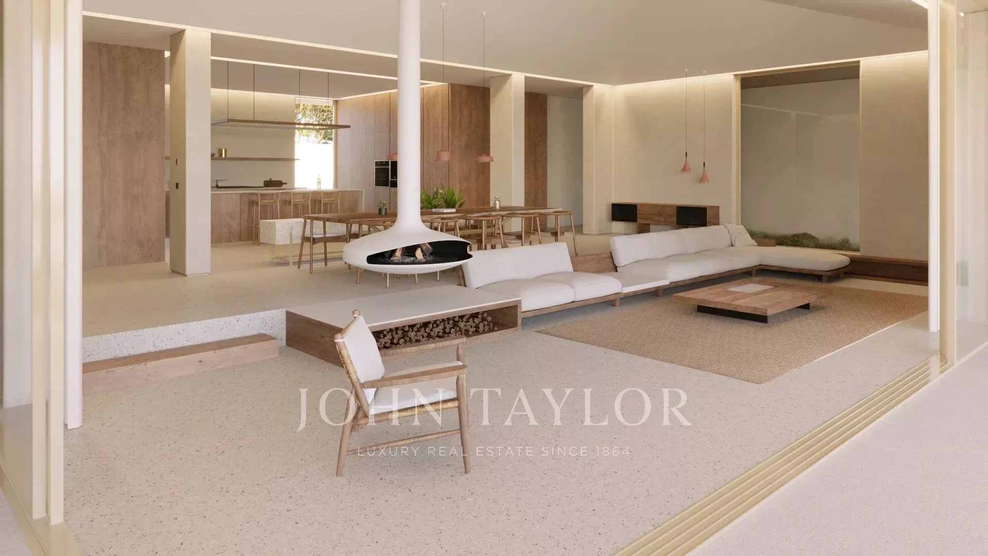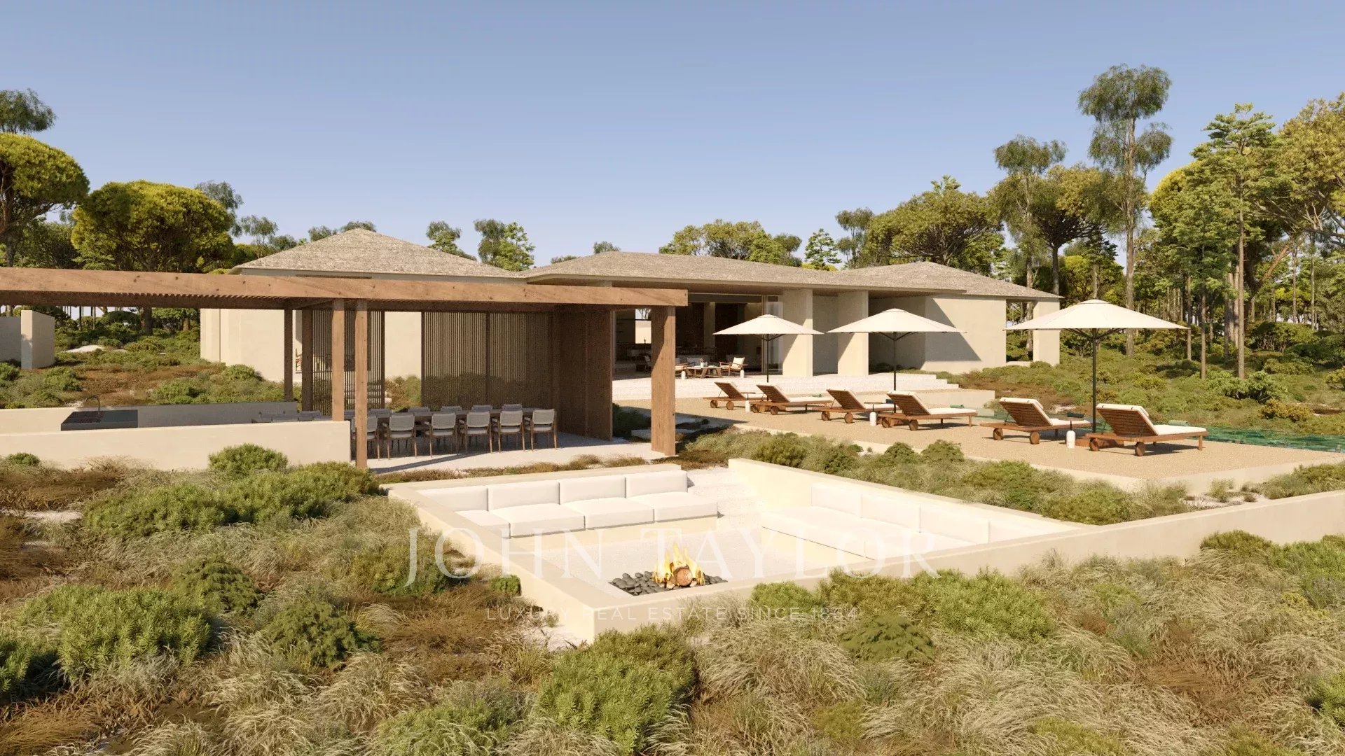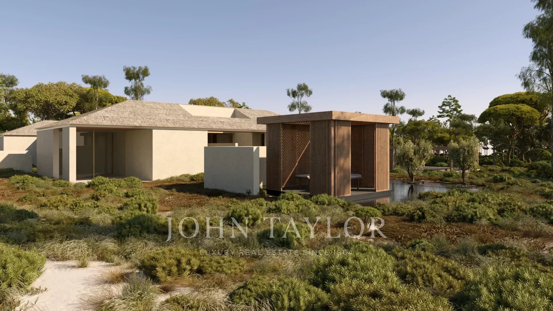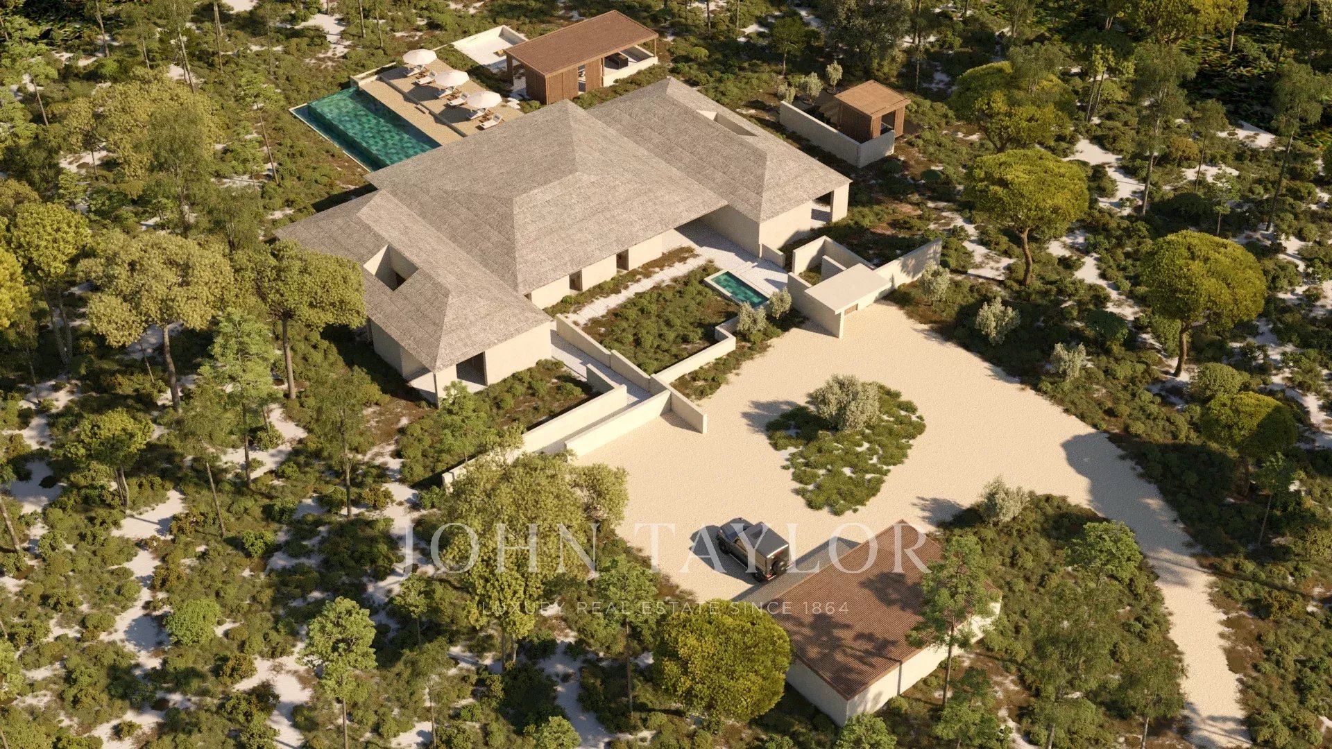 Особняк расположен на участке площадью 16 500 кв. м и имеет 665 кв. м застройки. В доме четыре больших сьюта с собственными террасами и один сьют поменьше. Из кухни, столовой и гостиной открытой планировки открываются виды на оливковые рощи и пробковые дубы. На открытом воздухе расположены два бассейна, открытая кухня, кострище, просторные террасы и крытая парковка на два автомобиля.