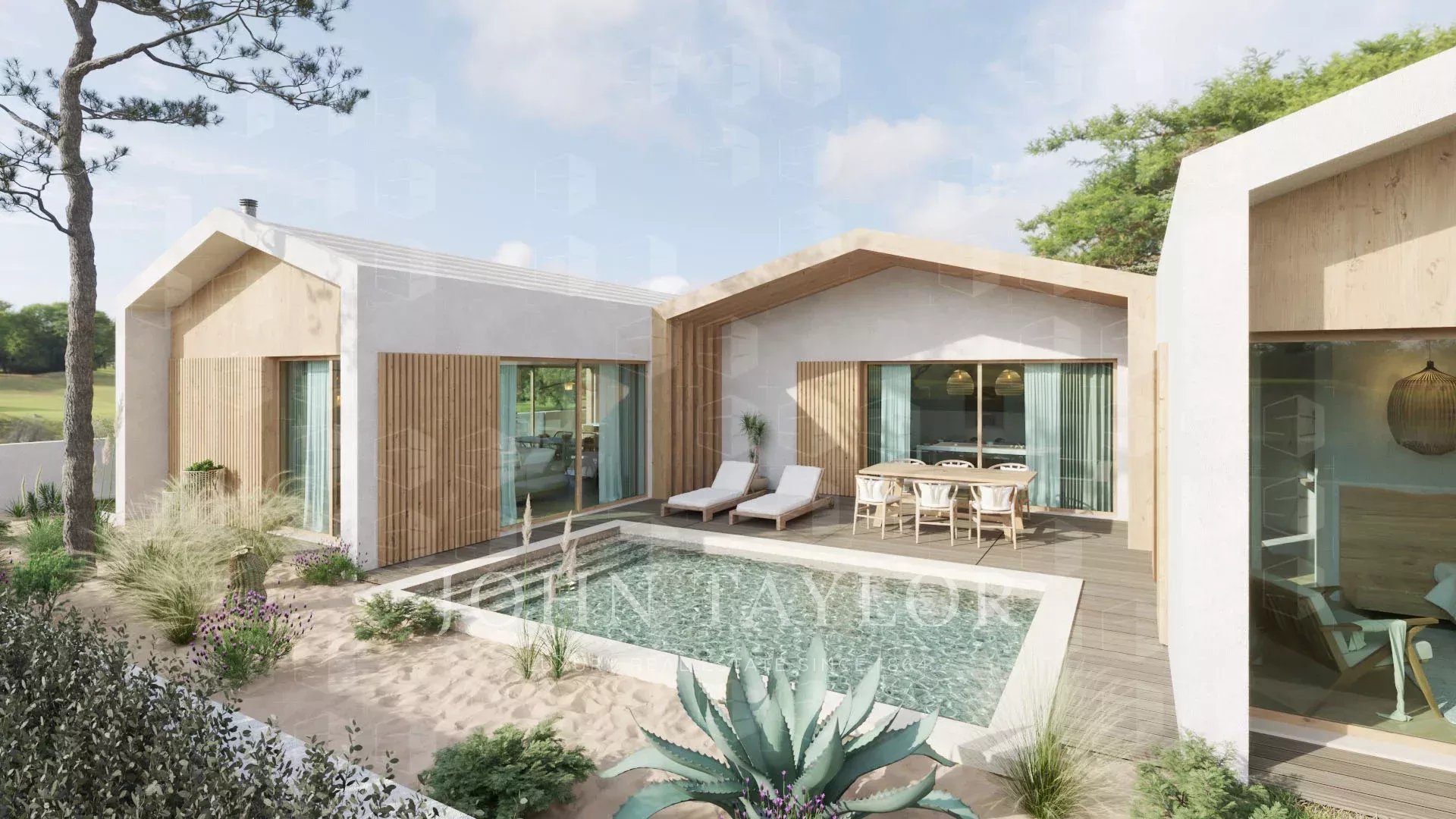 Имеется утвержденный проект виллы с 4 спальнями площадью 240 м². В дизайне сочетаются чистые современные линии и природное окружение Алентежу, а также просторные внутренние и внешние пространства.