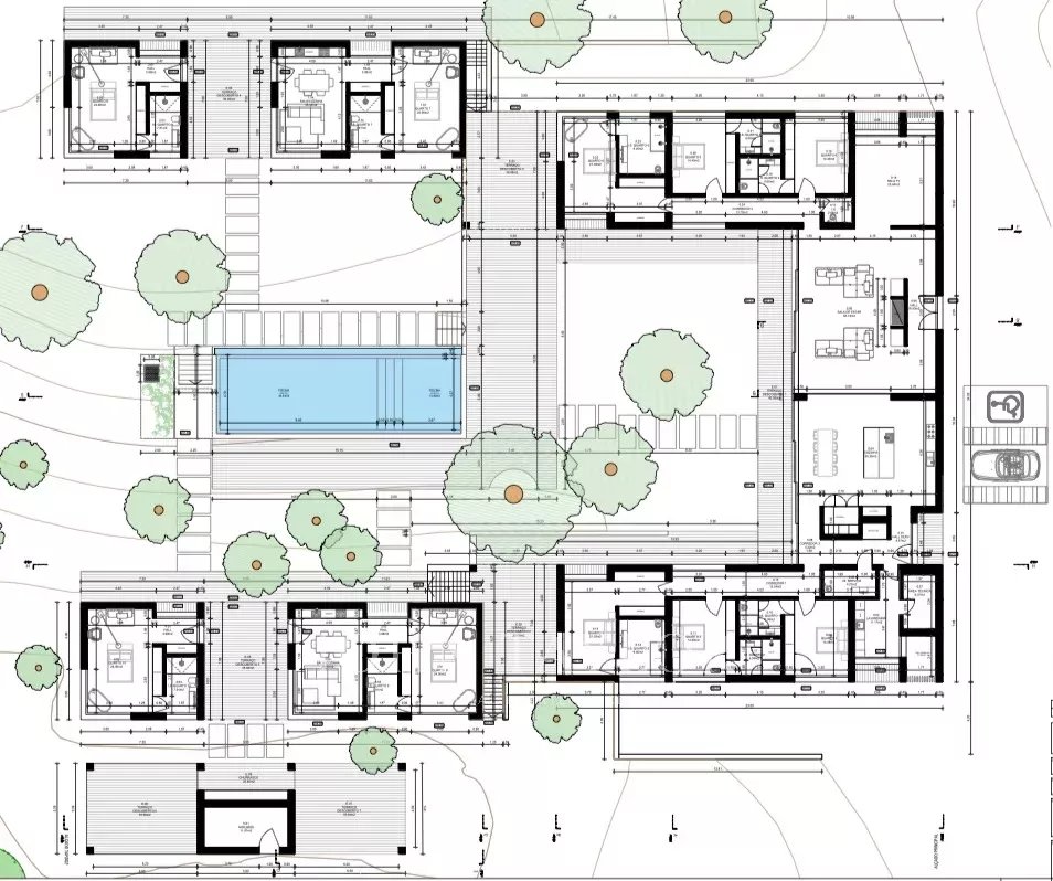 Во втором здании, расположенном в пяти метрах от главного дома, находятся четыре сьюта - идеальное место для гостей или персонала.