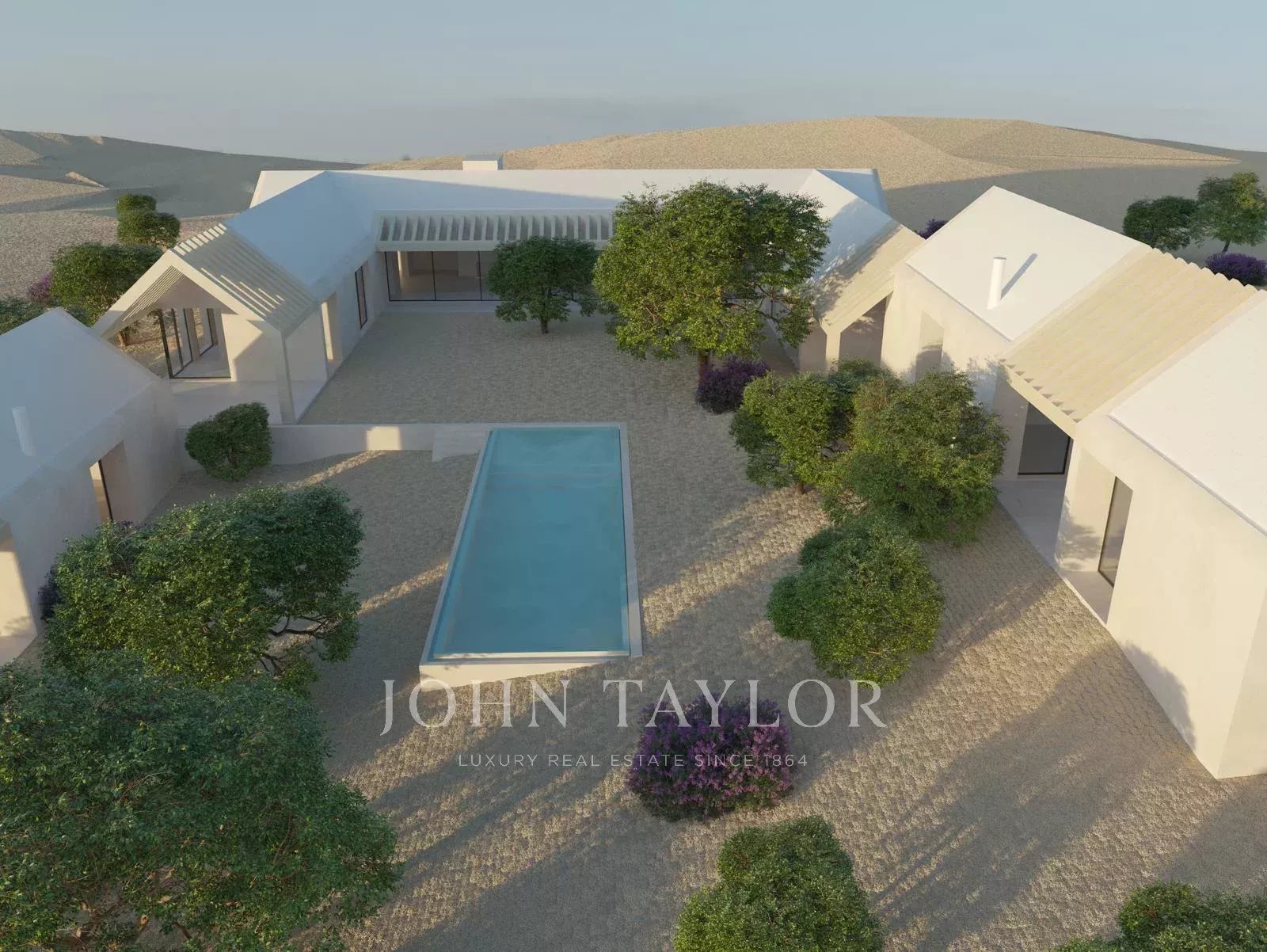 Современный дизайн, адаптированный к природному ландшафту. Главный дом площадью 500 м² включает шесть спален с ванными комнатами, просторные гостиные и столовые с открытыми видами, полноценную кухню и частный кинозал.