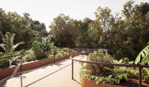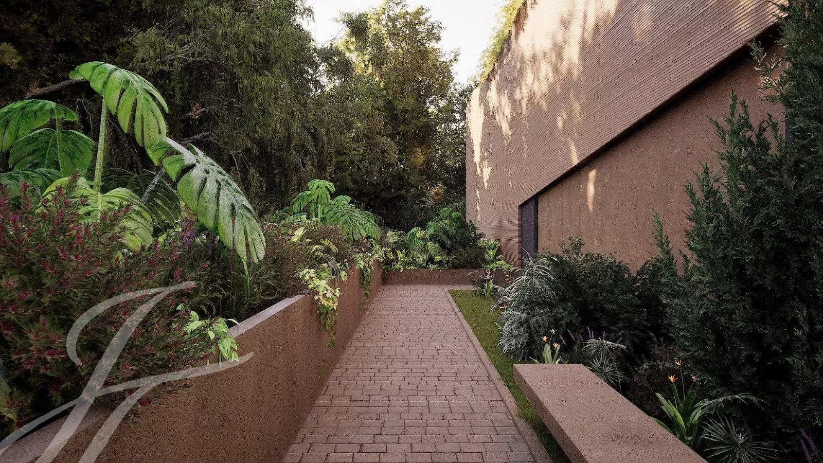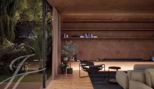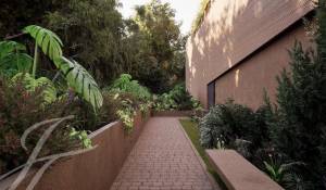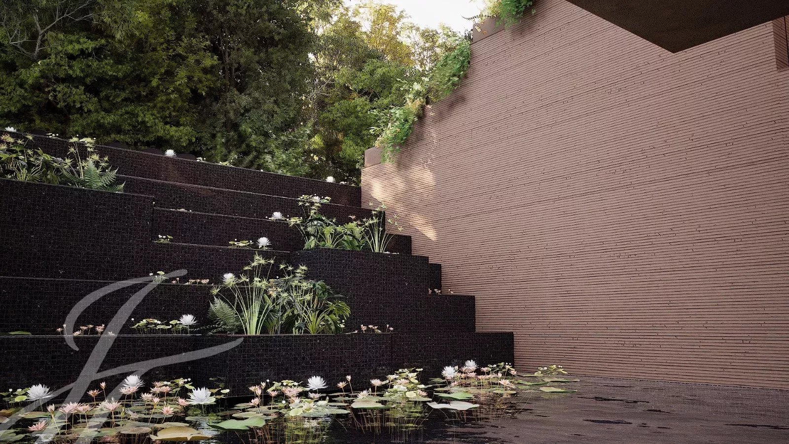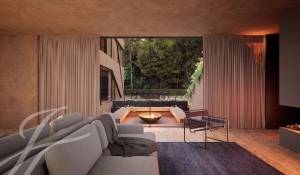 На нижнем этаже находится оздоровительная зона с тренажерным залом, сауной и потрясающим видом на внутренний двор, который соединяется с бассейном посредством водопада. На этом уровне также расположены подсобное помещение, многофункциональные технические зоны и гараж на четыре автомобиля.