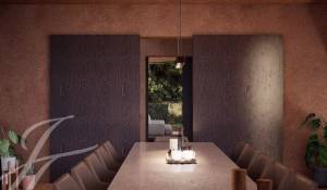 На первом этаже большая гостиная площадью более 90 кв. м разделена на три взаимосвязанные, но разные зоны, создавая плавное и уютное пространство. Столовая, рассчитанная на 12 человек, идеально подходит для приема гостей, а главная кухня с центральным островом - для общения. Полностью оборудованная вспомогательная кухня дополняет пространство, а также гостевые апартаменты, которые гарантируют комфорт и уединение.