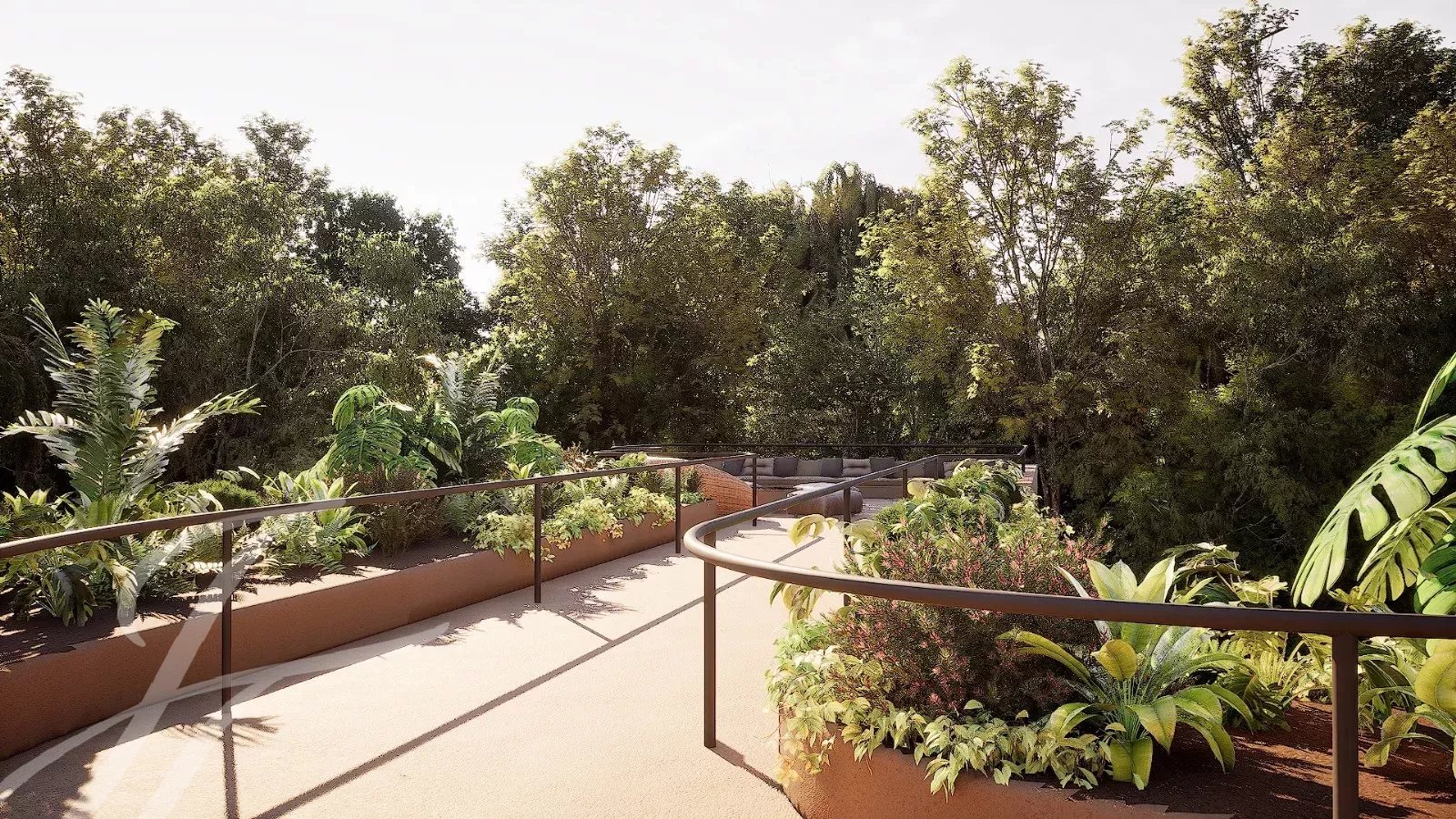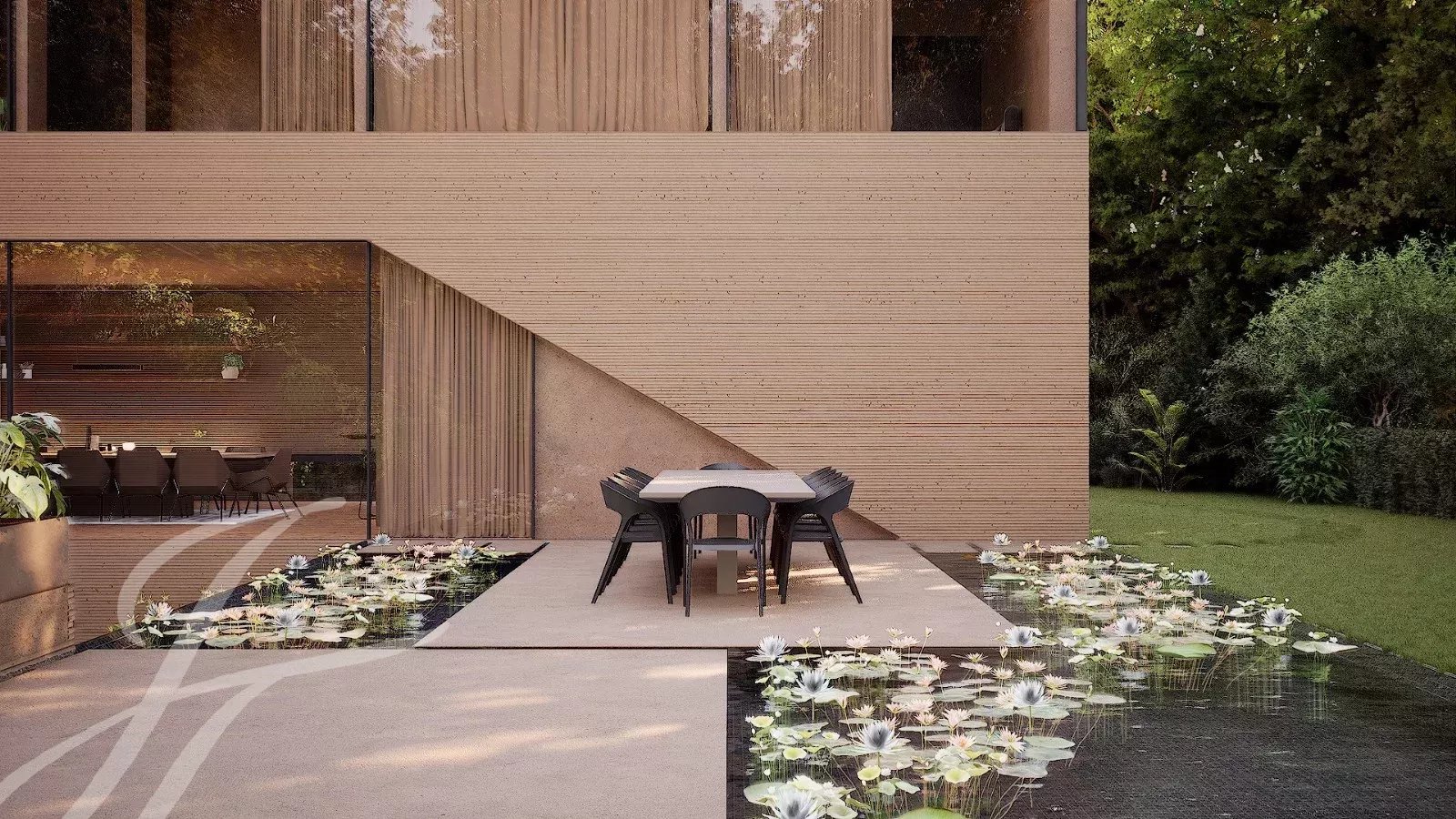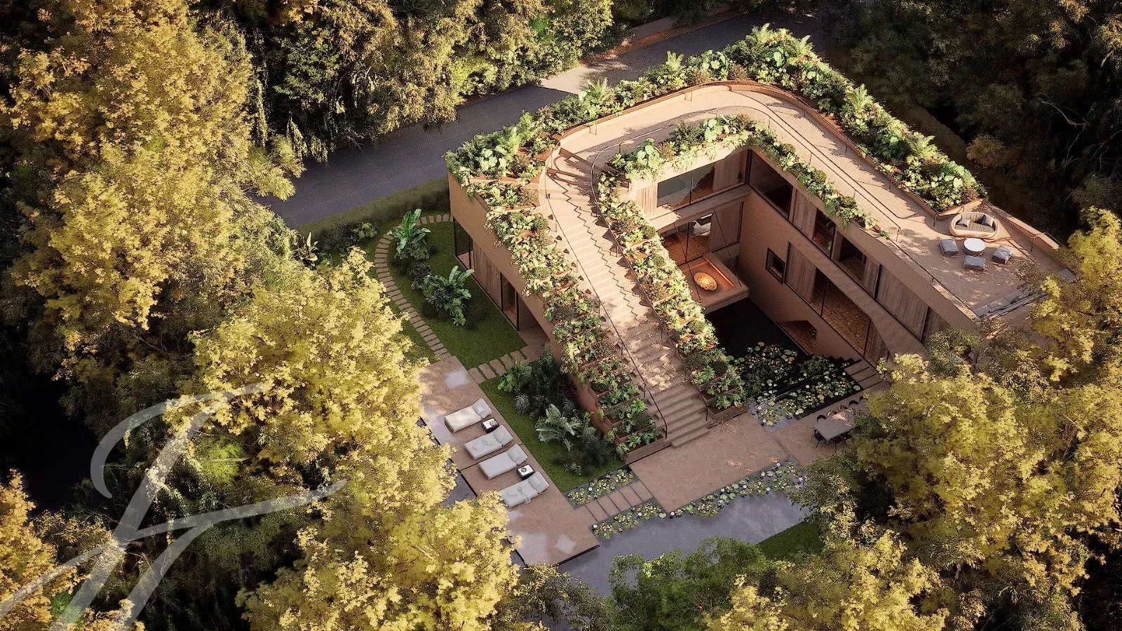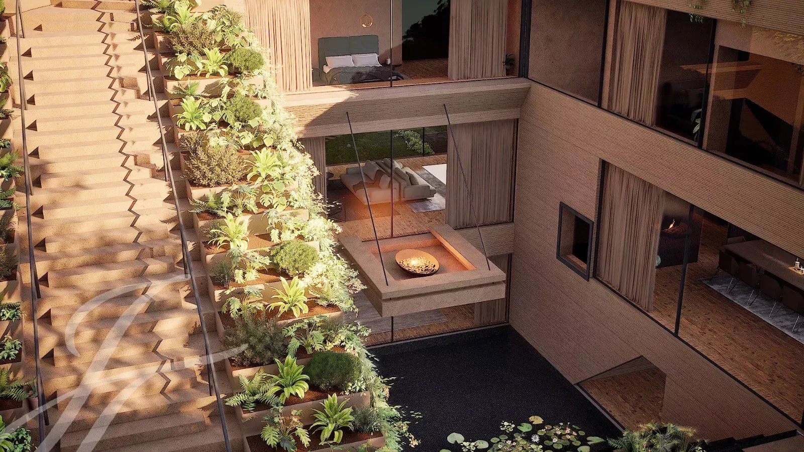 Внешний вид "Бесконечного дома" представляет собой настоящий оазис с ландшафтным садом вокруг бассейна и панорамной террасой на крыше, откуда открывается невероятный вид на окружающую природу.