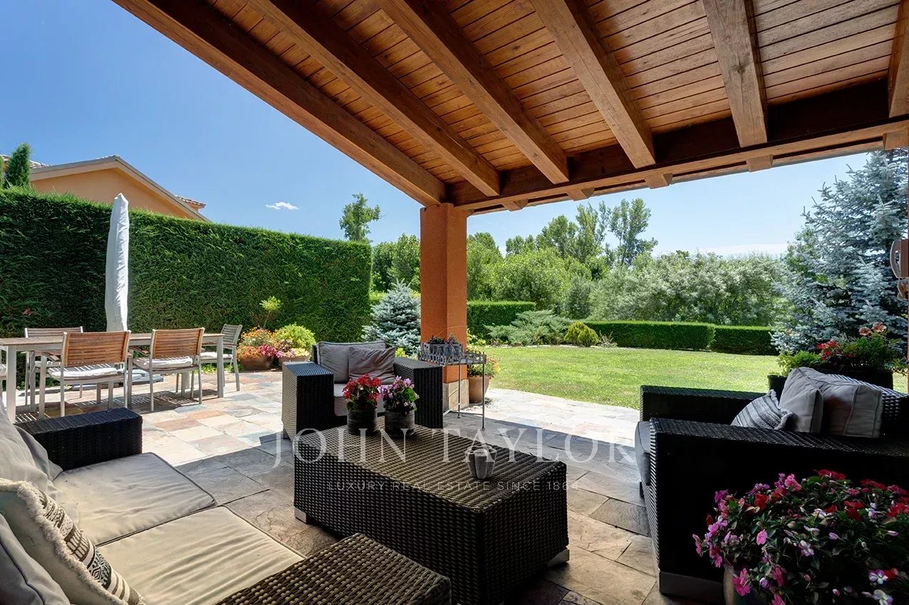 Вилла площадью 613 м², построенная на участке 940 м², находится в идеальном состоянии и сочетает в себе комфорт с приятным и современным интерьером, который придают ей материалы и распределение, а также ее мансардный этаж.