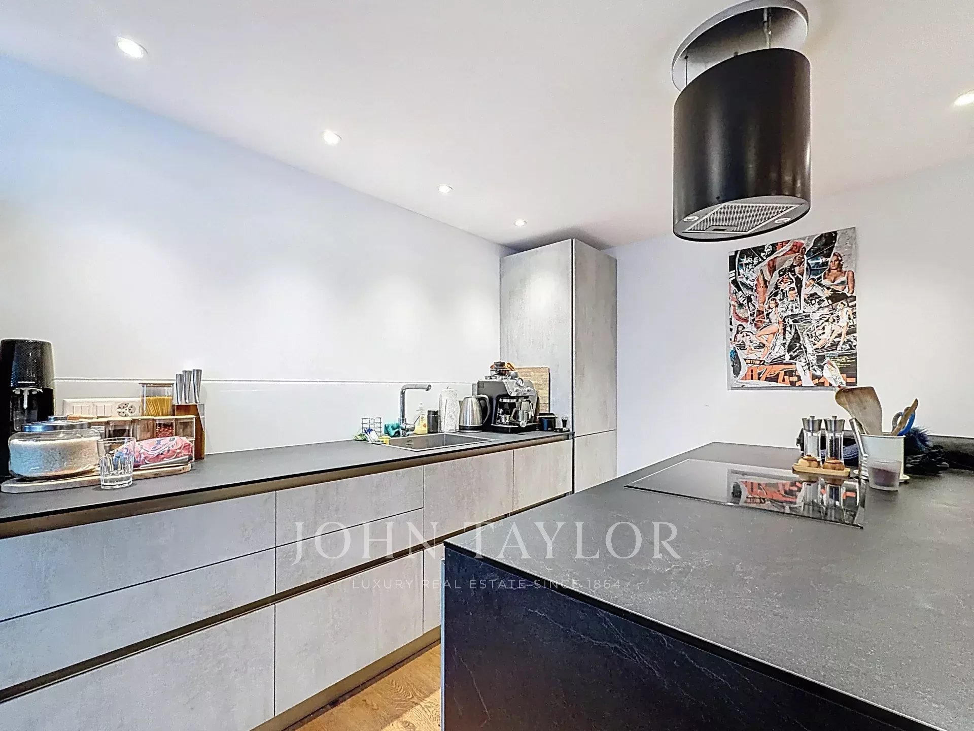 Кухня открытой планировки современная и функциональная, с центральным островом и встроенной техникой, идеально подходит для быстрых завтраков или вечеров с друзьями.