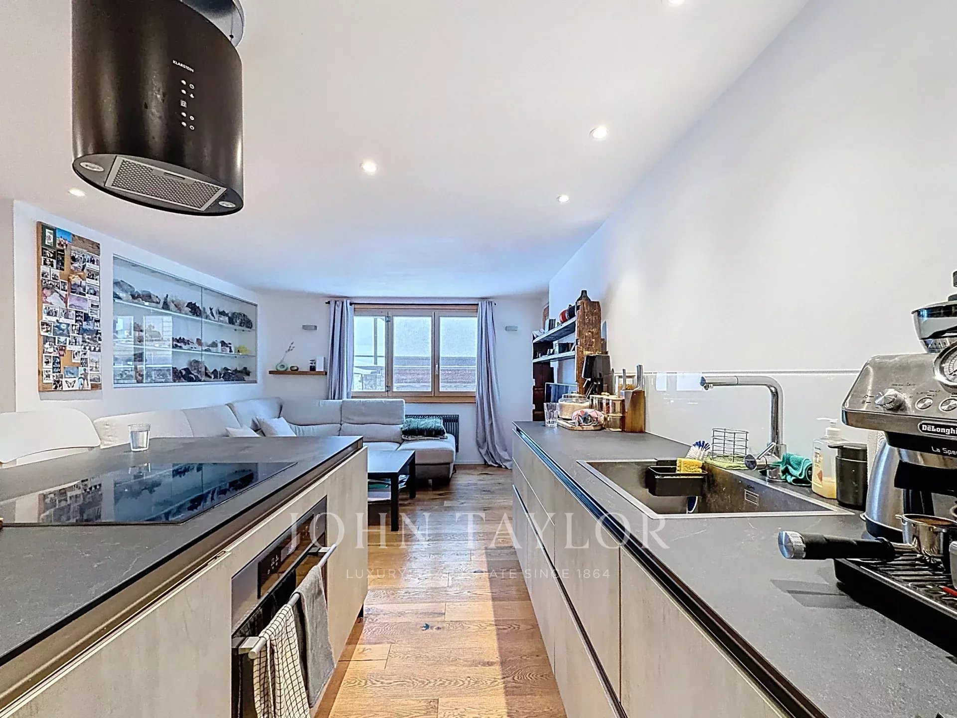 Полностью перепланированная, эта квартира может похвастаться светлым, уютным интерьером с деревянными полами и большим эркером. Гостиная - теплая и уютная, создающая идеальную атмосферу после дня, проведенного в горах.