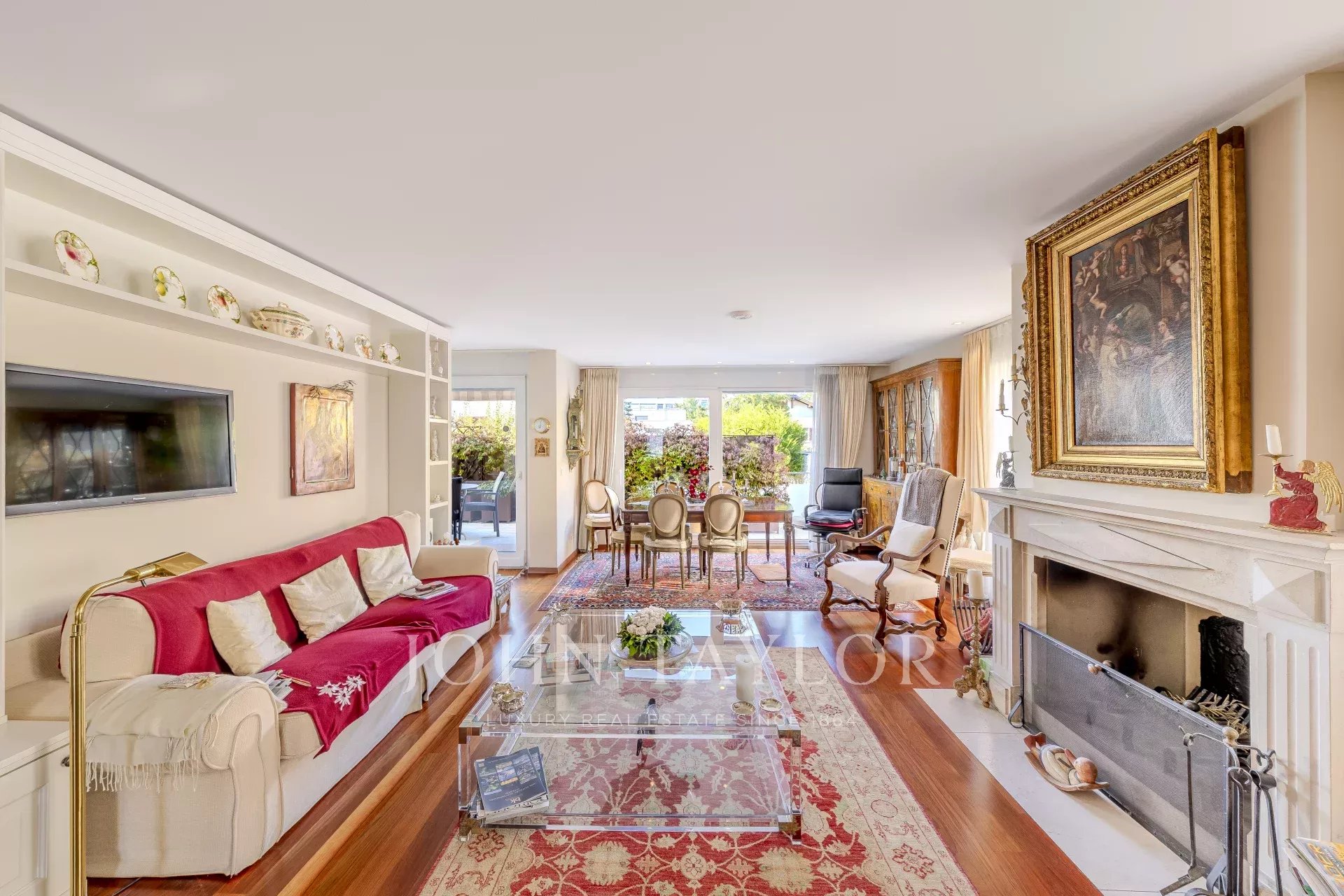 -Элегантная гостиная с камином, прямой выход на солнечную террасу