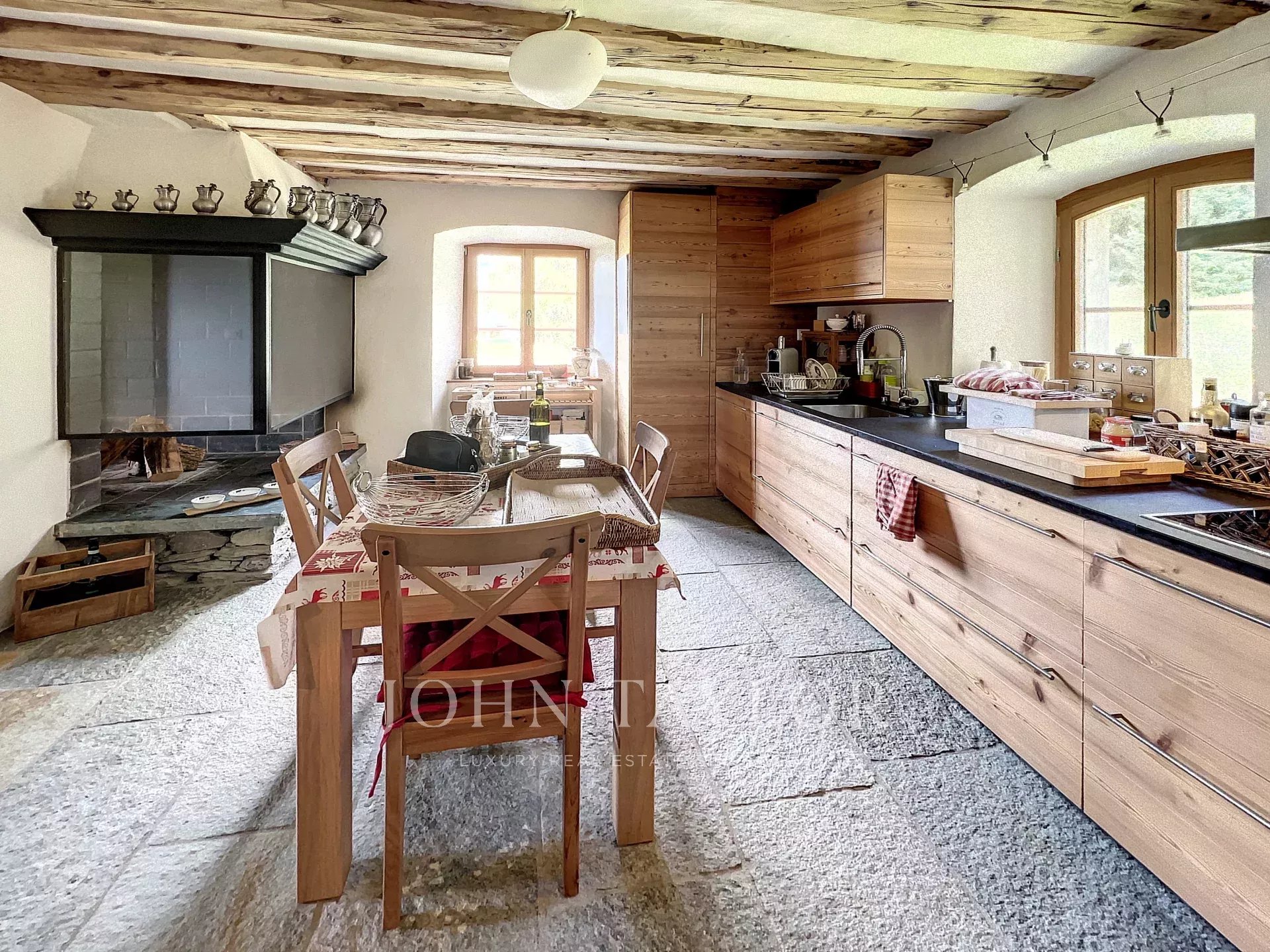 Полностью отремонтированный в 2016 году с использованием высококачественных материалов, таких как натуральный камень и лиственница, он также оснащен тепловым насосом для подогрева полов. Камины обеспечивают дополнительное эстетическое отопление.
