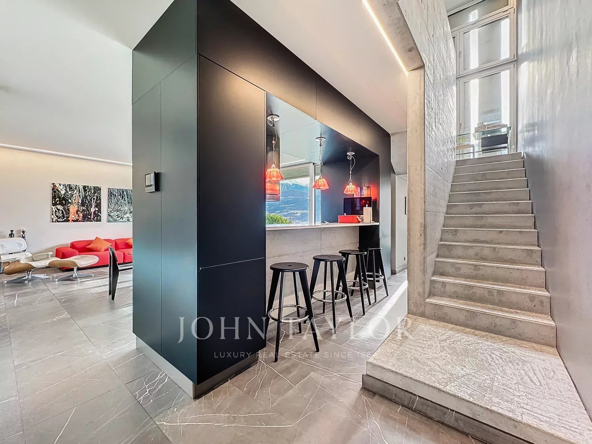 Расположенный в популярном районе Гравелоне, этот дом, построенный из бетона, может похвастаться тщательно продуманной архитектурой и первоклассной отделкой.