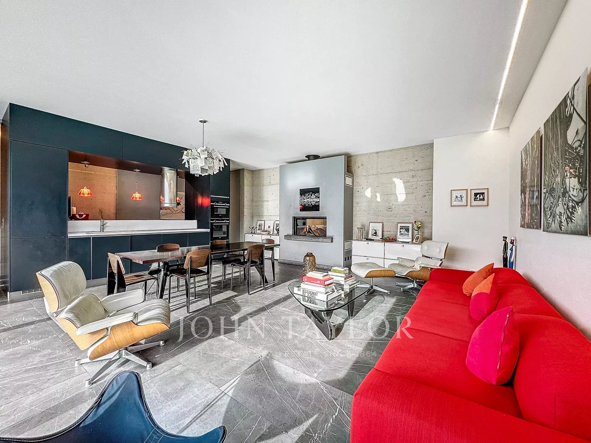 - Большая гостиная с обеденной зоной и кухней открытого плана.