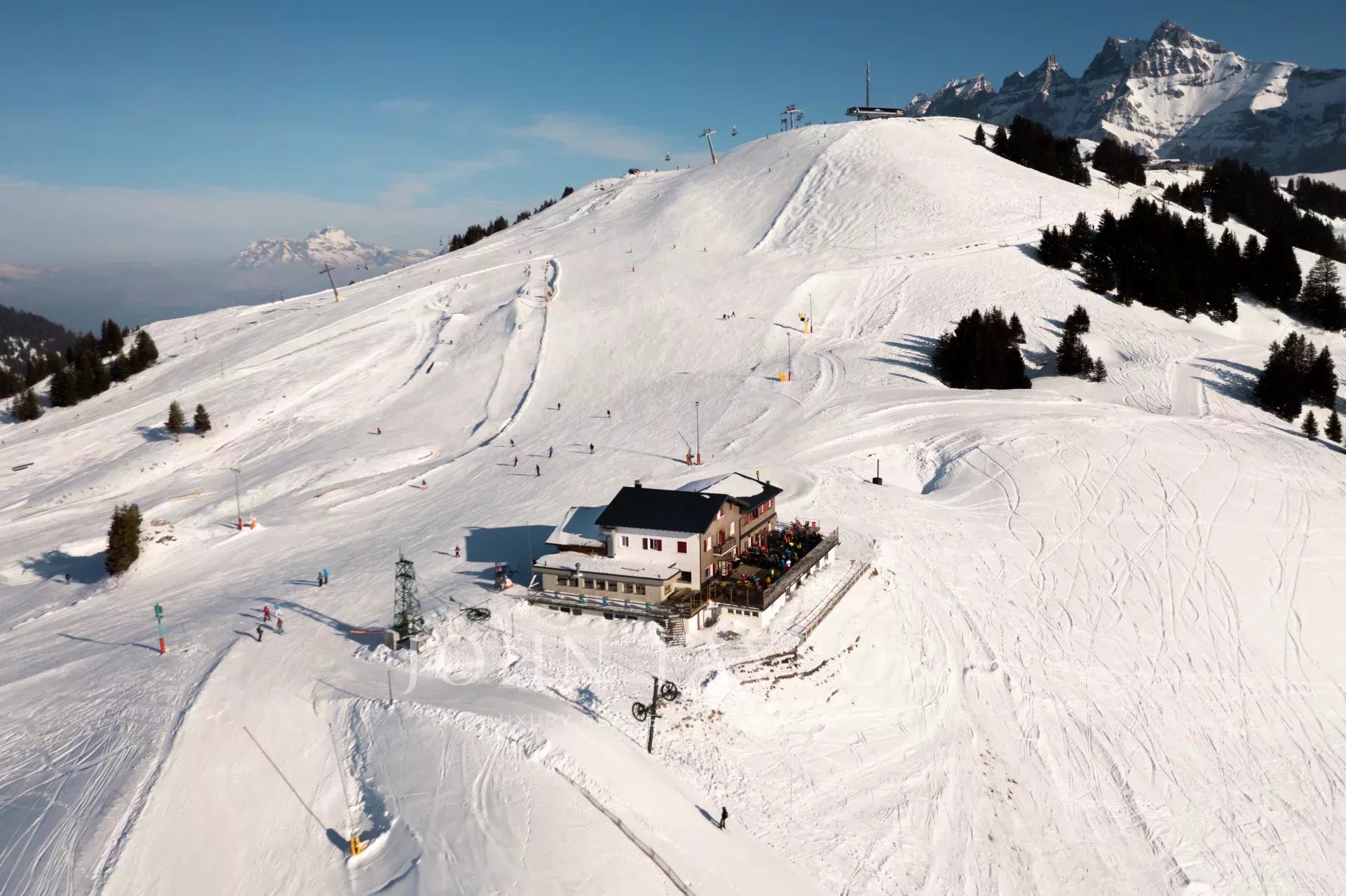 Из комплекса открываются исключительные виды на горы Дентс-Бланш, Коль-Бретоле и Коль-де-Ку, а также на стену Шаванетт - один из ключевых маршрутов в Авориаз во Франции.