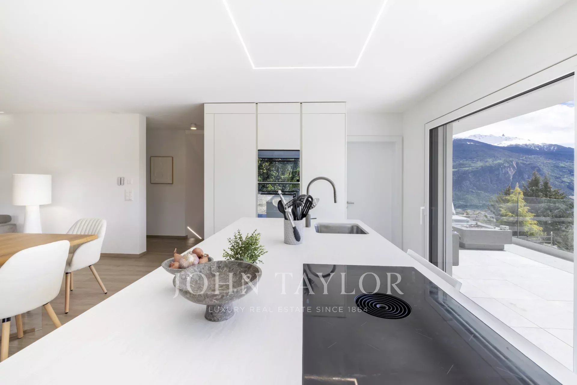 Из окон открывается великолепный вид на Альпы и равнину Роны, а южная сторона гарантирует оптимальное количество солнечного света. Буколическая обстановка убережет вас от любых неприятностей. Высота 930 м над уровнем моря, между равниной и горами, гарантирует быстрый и легкий доступ к городу, местам отдыха и знаменитым горнолыжным курортам Кран и Анзер. Близость школ, общественного транспорта и бытовых удобств удовлетворит потребности любой семьи.