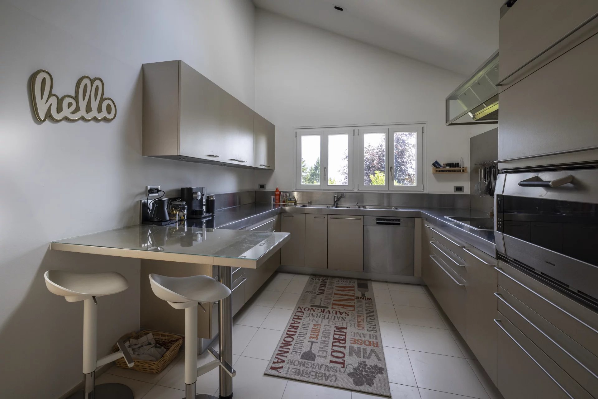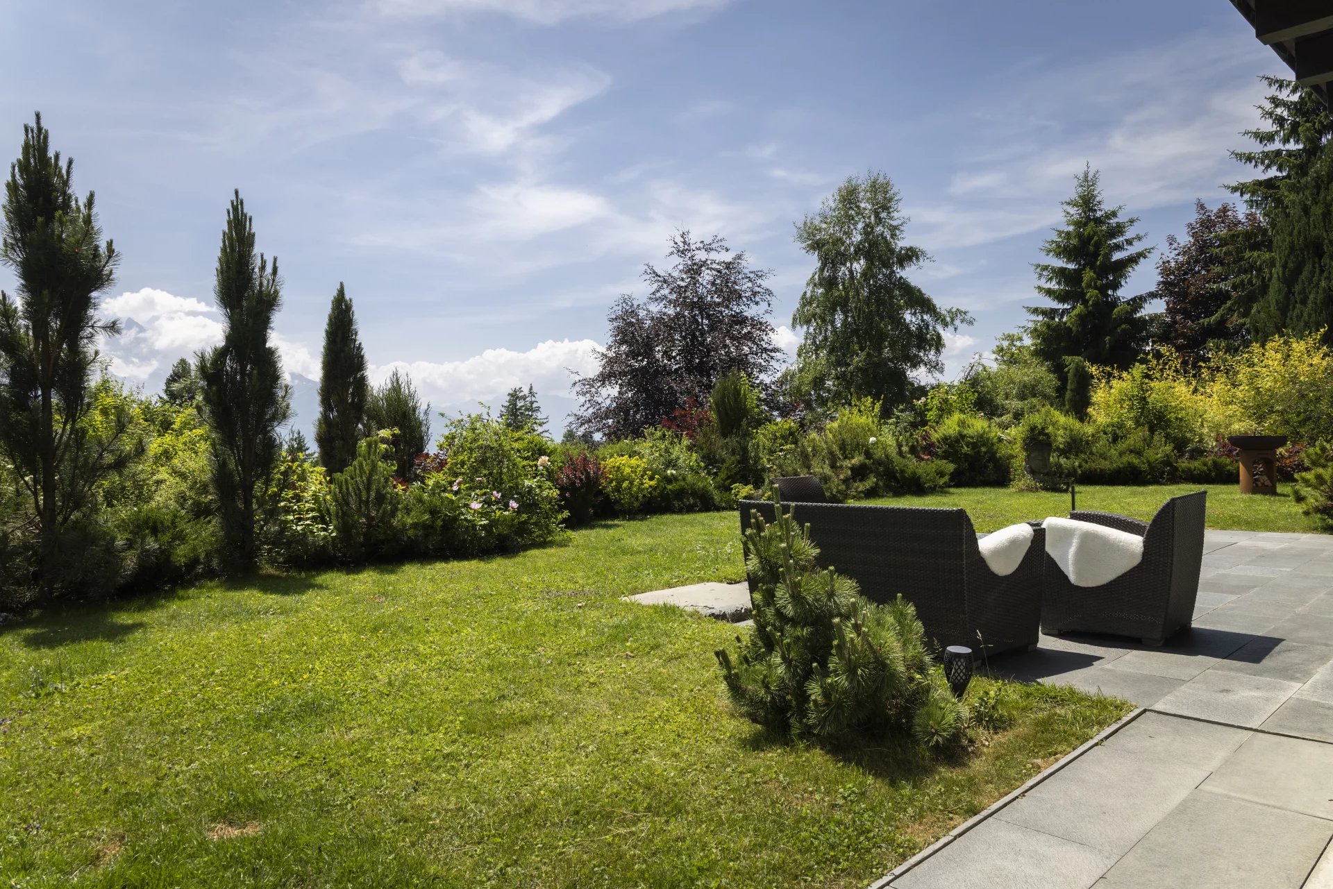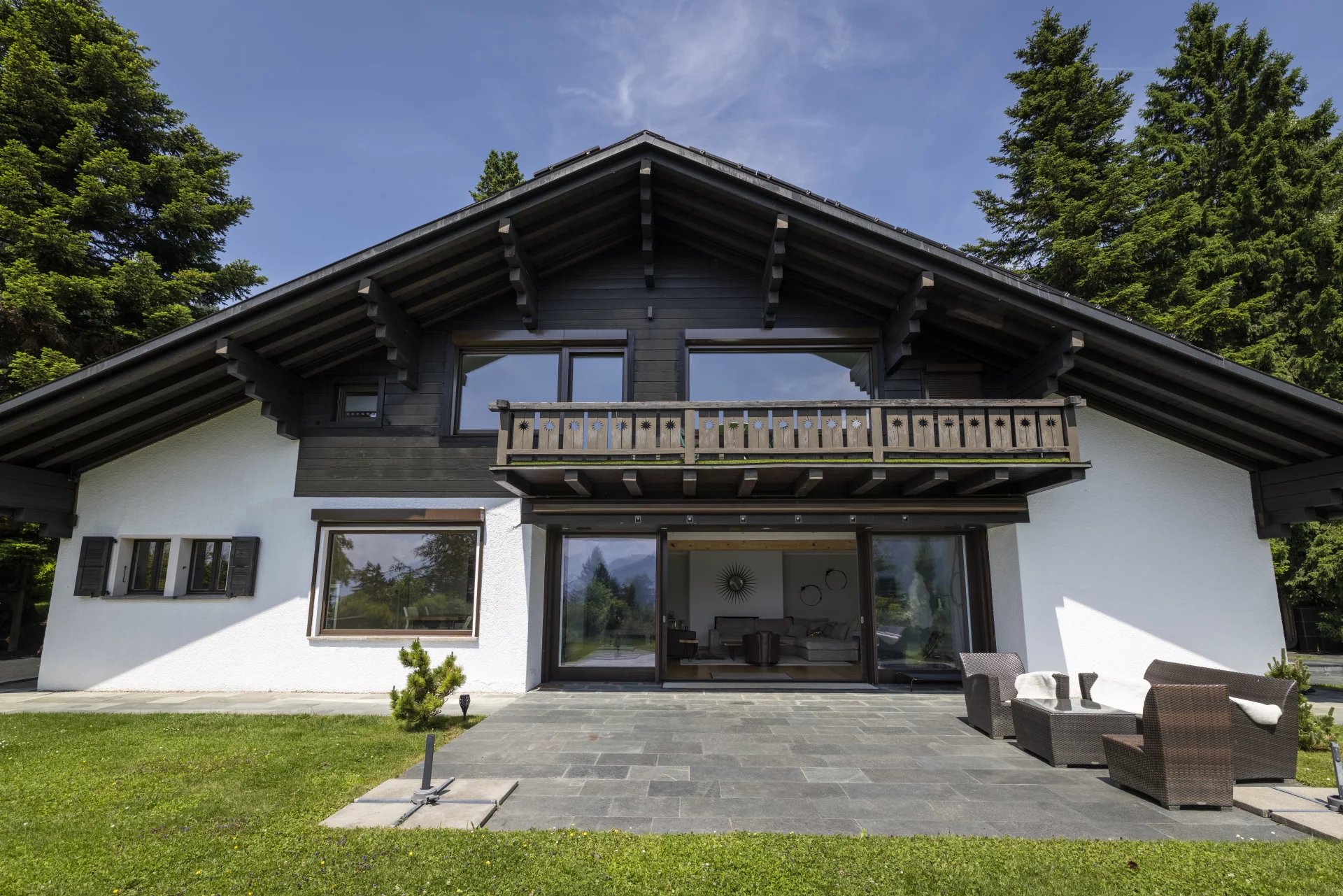 Роскошь продолжается и снаружи, с великолепным бассейном, который гармонично вписывается в зеленеющий сад. Представьте себе, как вы расслабляетесь у воды, окруженные спокойствием окружающих гор. Эта вилла - идеальное место для того, чтобы наслаждаться солнечными днями, любуясь уникальными альпийскими пейзажами.