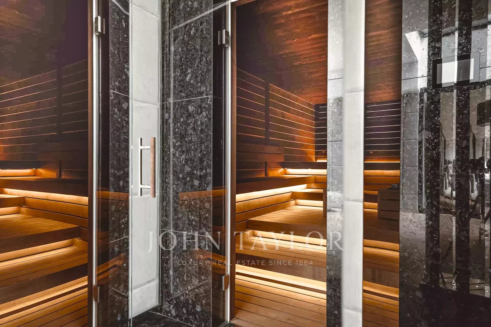 -Снаружи: панорамная терраса площадью 530 м², два бассейна, джакузи и атмосфера Zen.