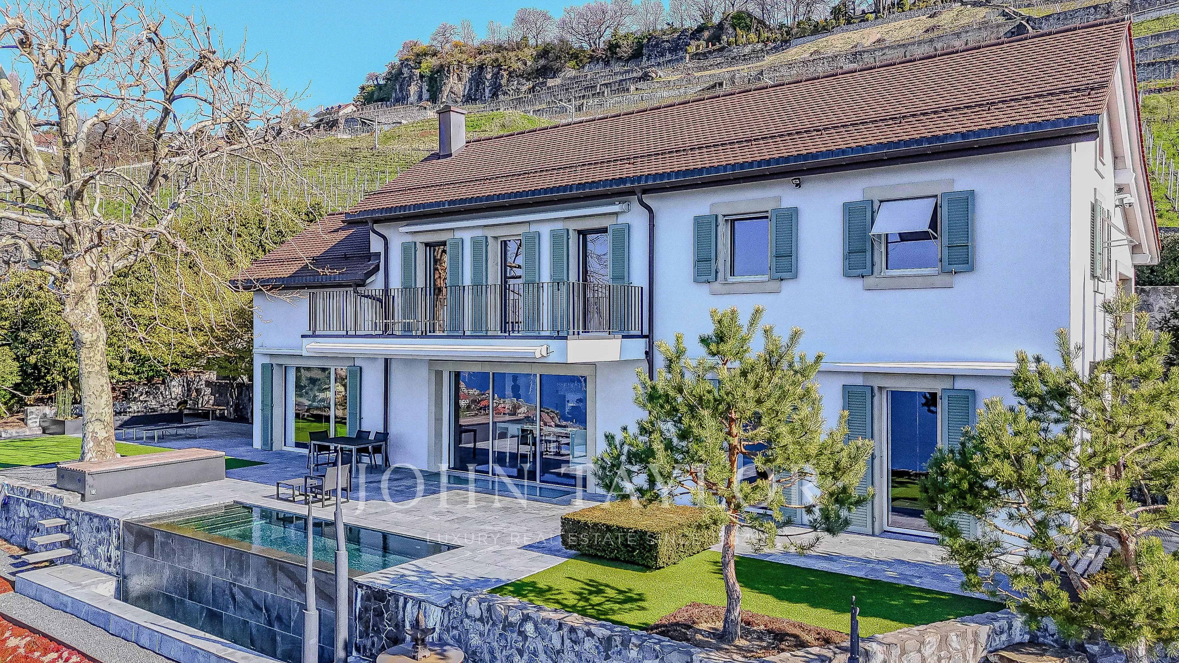 - С видом на знаменитые виноградники Лаво, внесённые в список Всемирного наследия ЮНЕСКО, эта недвижимость предлагает исключительную атмосферу, одновременно редкую и сохранившуюся.