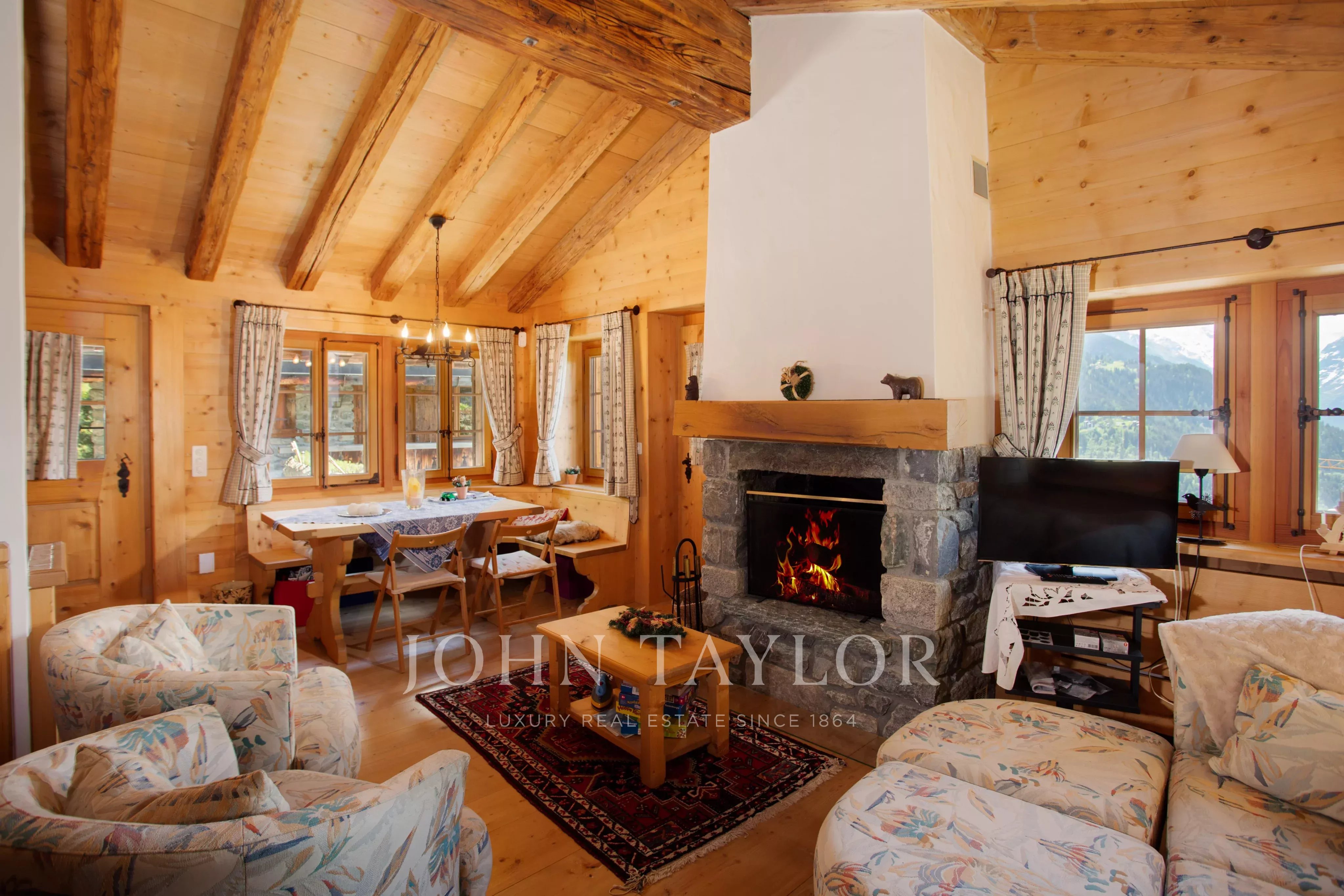 Лифт поднимает вас в сердце шале: просторную гостиную, залитую светом, с камином, который располагает к общению и зимним вечерам с видом на захватывающую панораму. Кухня и столовая открытой планировки, расположенные под крышей, создают теплую и элегантную атмосферу, идеально подходящую для развлечений.