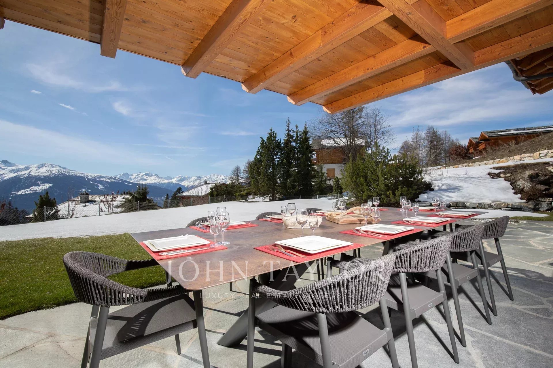 Джон Тейлор Кранс-Монтана предлагает вам эту превосходную двухуровневую квартиру с садом в великолепной резиденции класса люкс.