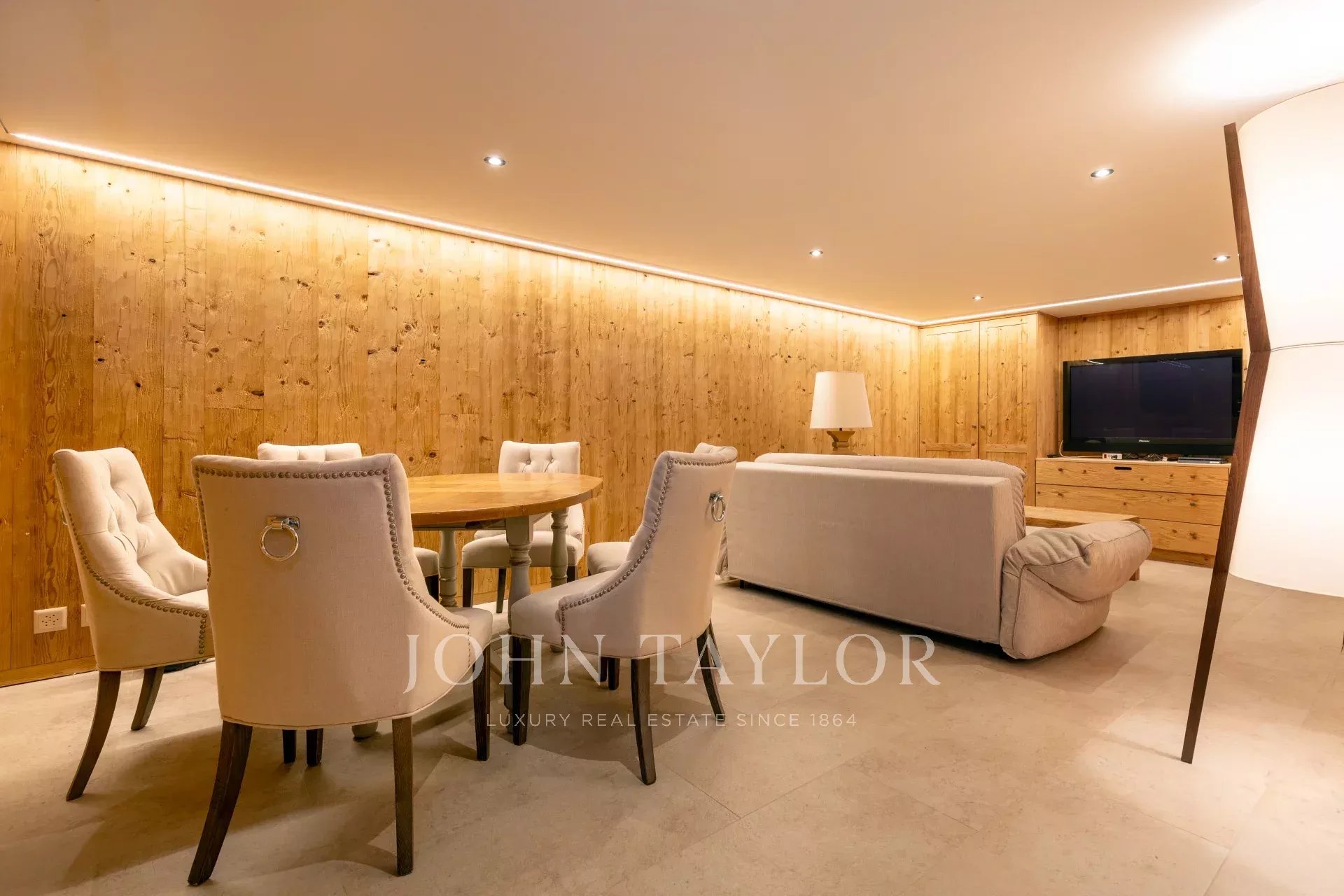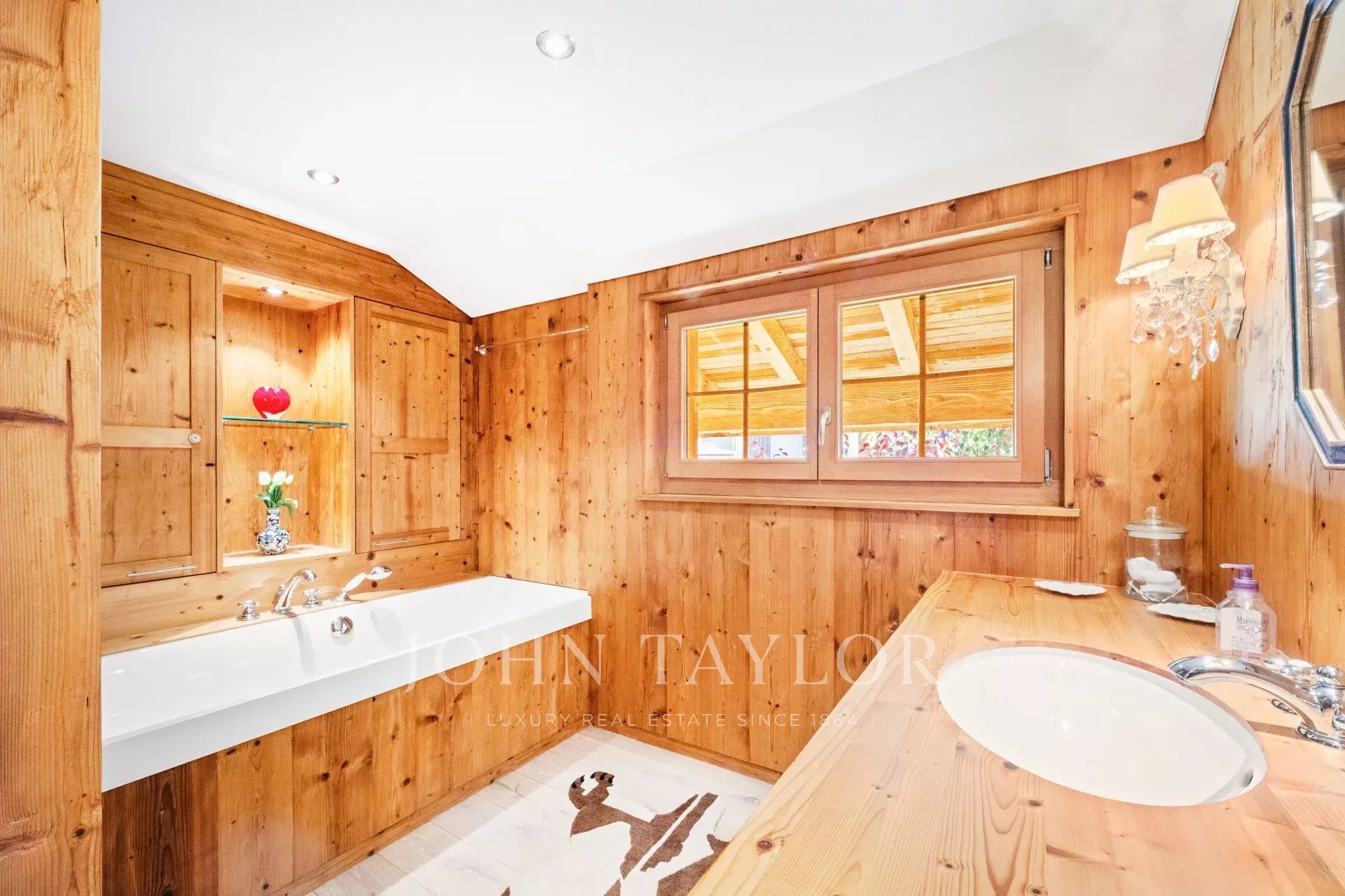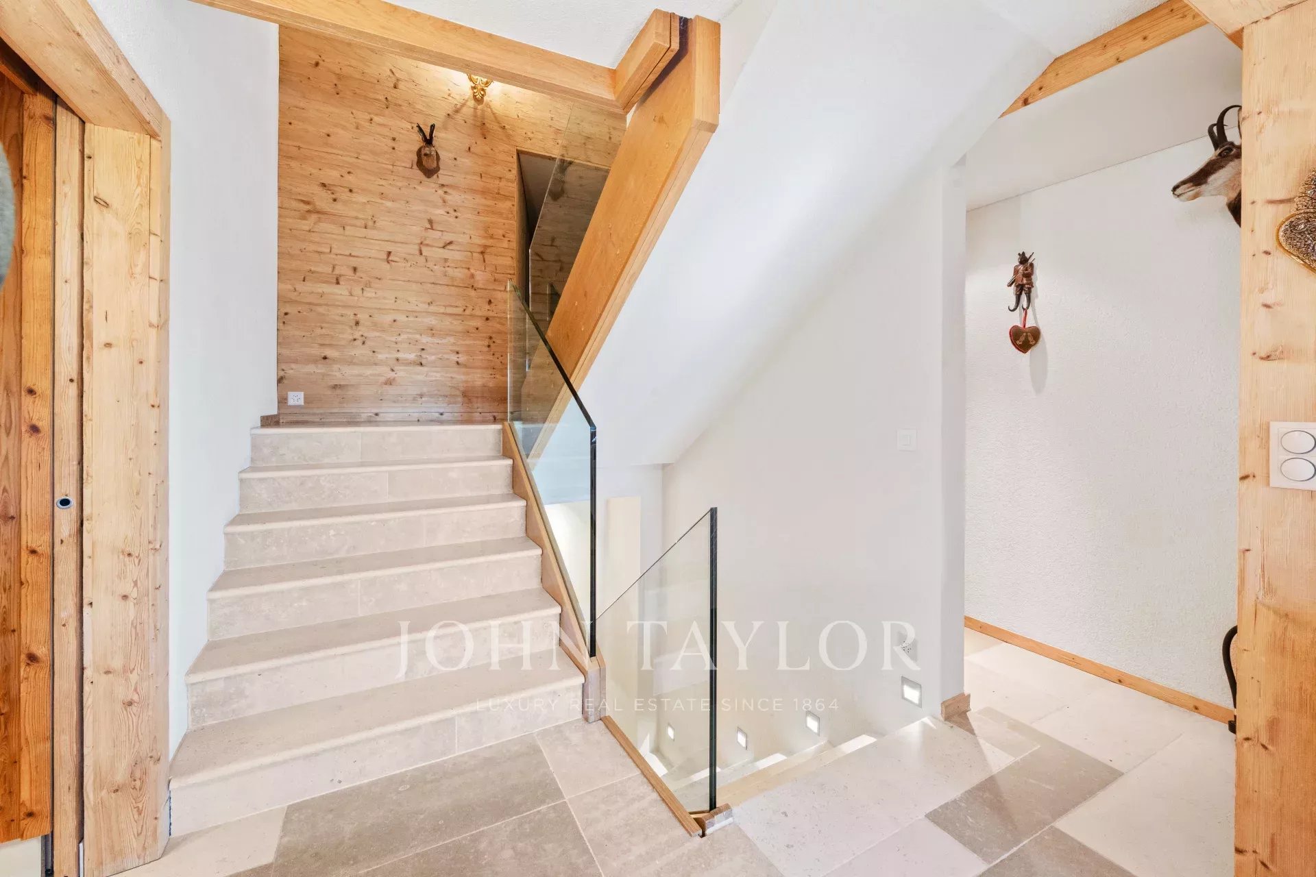 Это роскошное шале, отремонтированное в 2009 и 2023 годах, покорит вас своим интерьером в горном стиле. Внутренняя отделка этого уютного дома выполнена из высококачественных материалов. Окна выходят на юг, поэтому в течение всего дня здесь много солнечного света.
