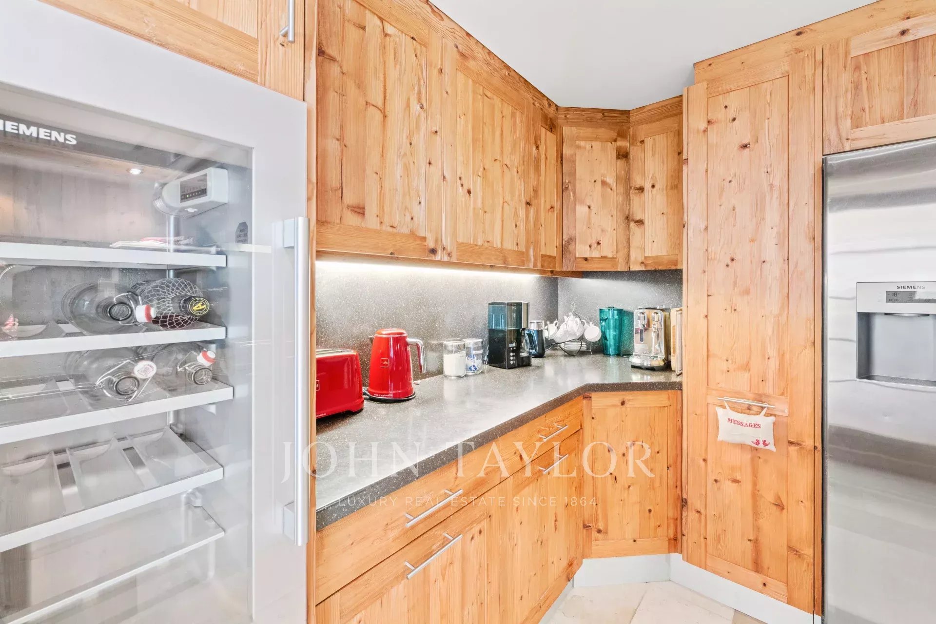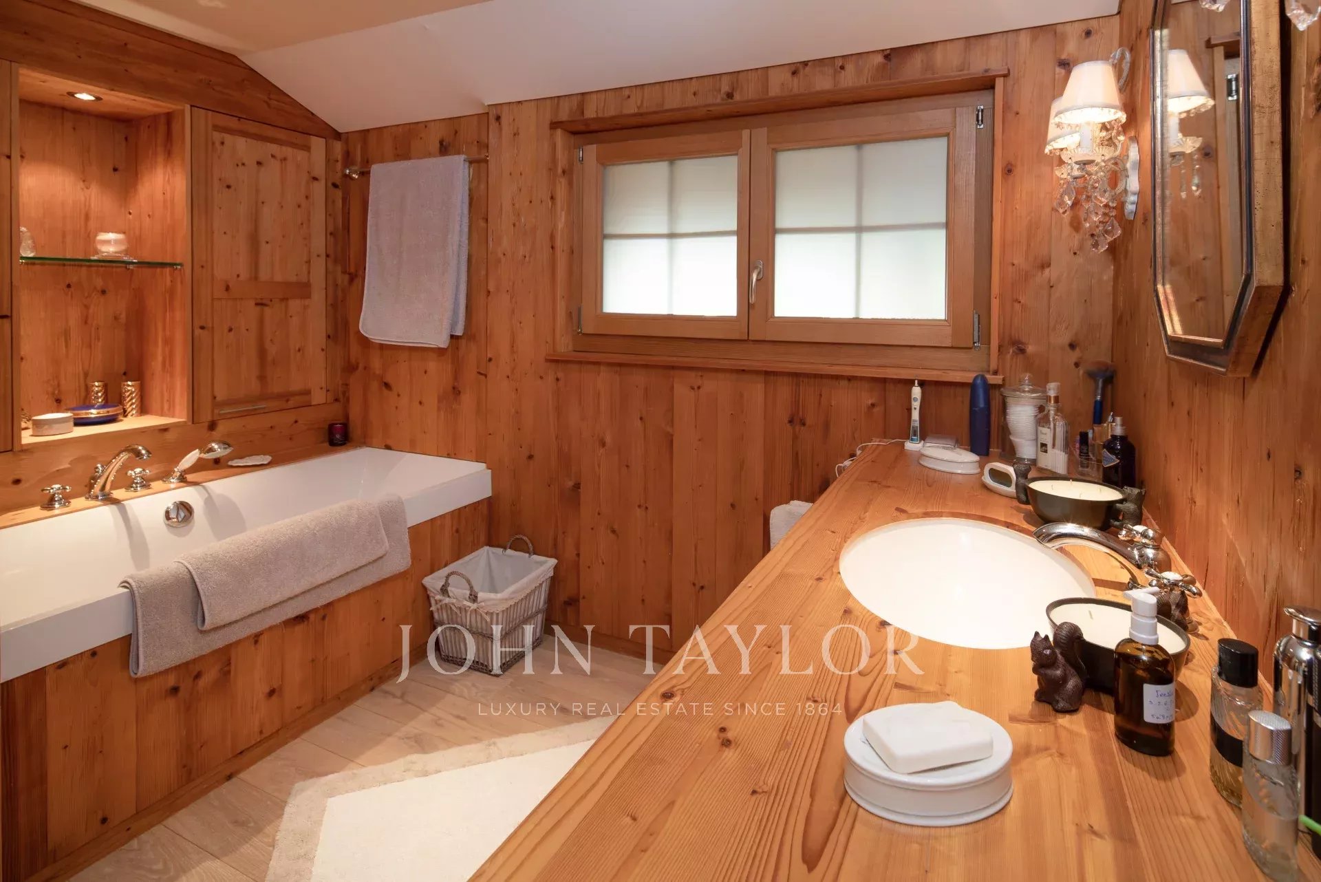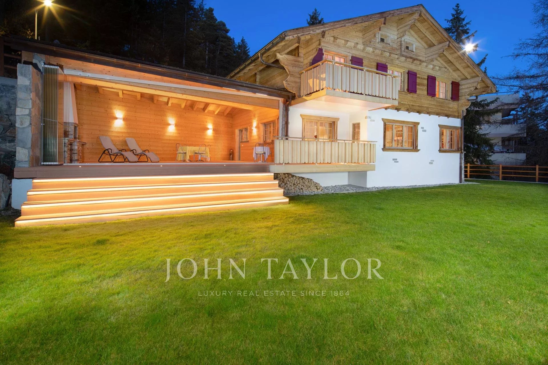Это роскошное шале, отремонтированное в 2009 и 2023 годах, покорит вас своим интерьером в горном стиле. Внутренняя отделка этого уютного дома выполнена из высококачественных материалов. Окна выходят на юг, поэтому в течение всего дня здесь много солнечного света.